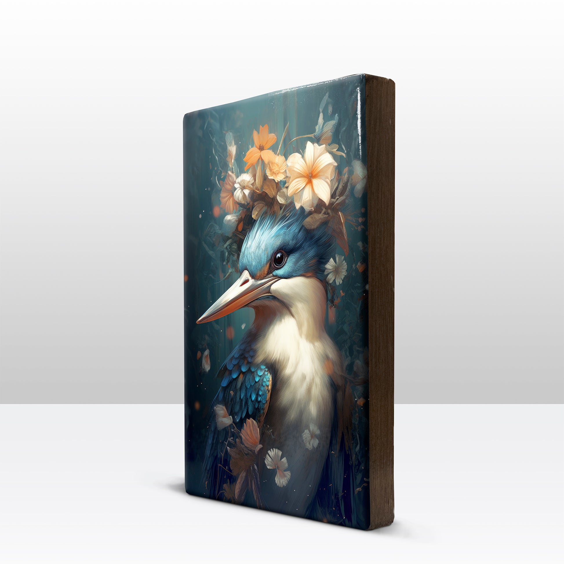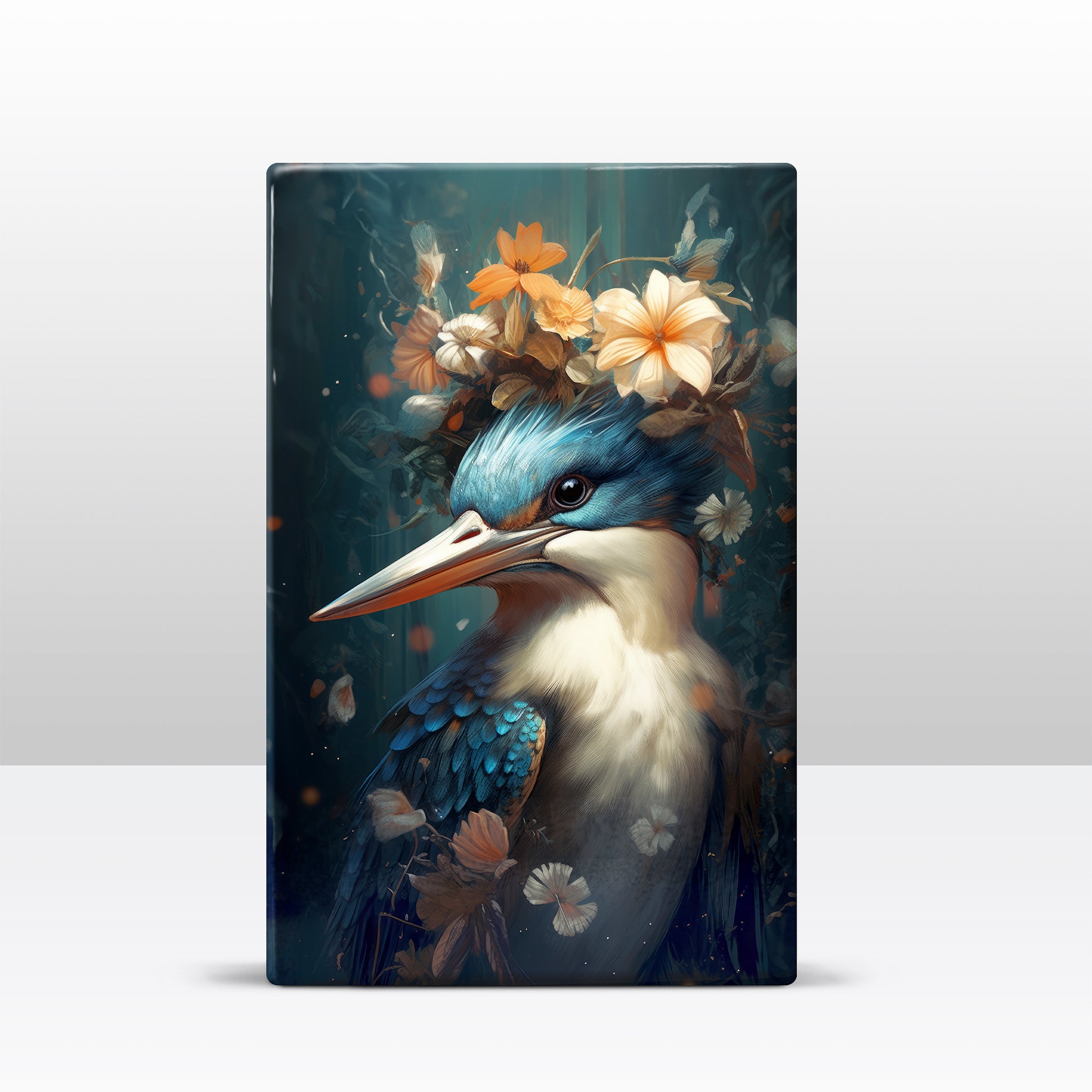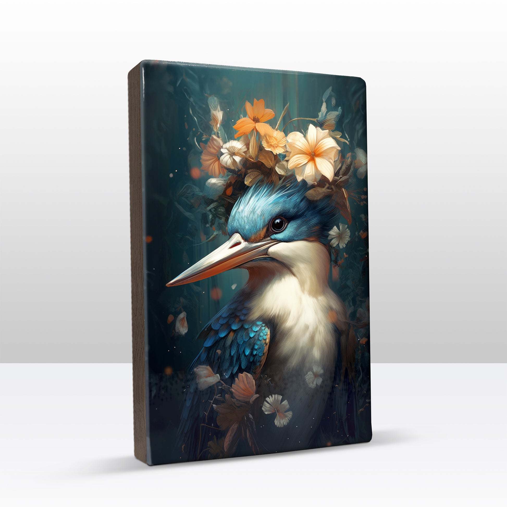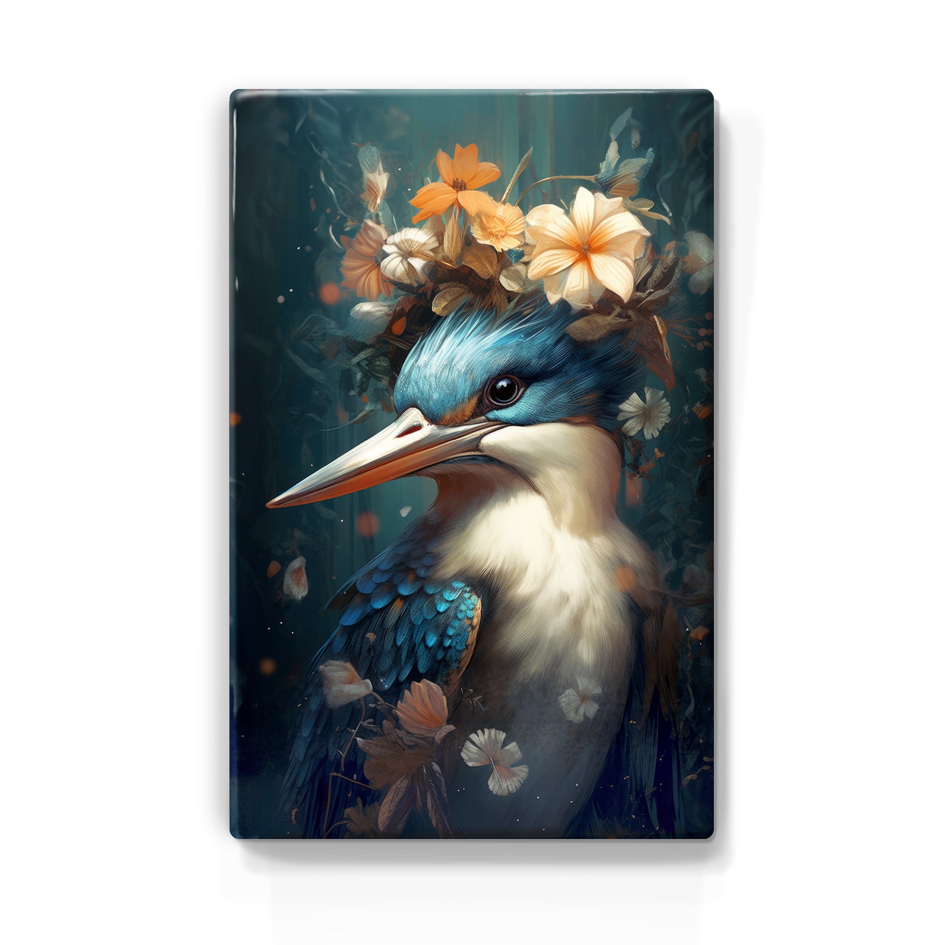 Kingfisher with flowers Close-Up - Laque print - 19.5 x 30 cm - LP326