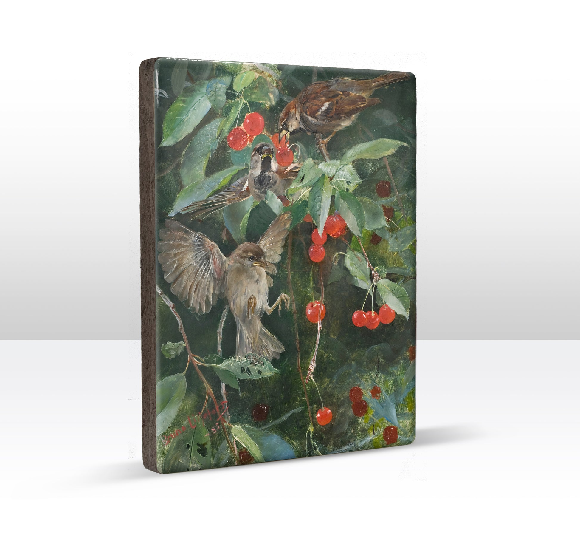 Laque print - Sparrows in a cherry tree - Bruno Liljefors - 19.5 x 26 cm - LP251