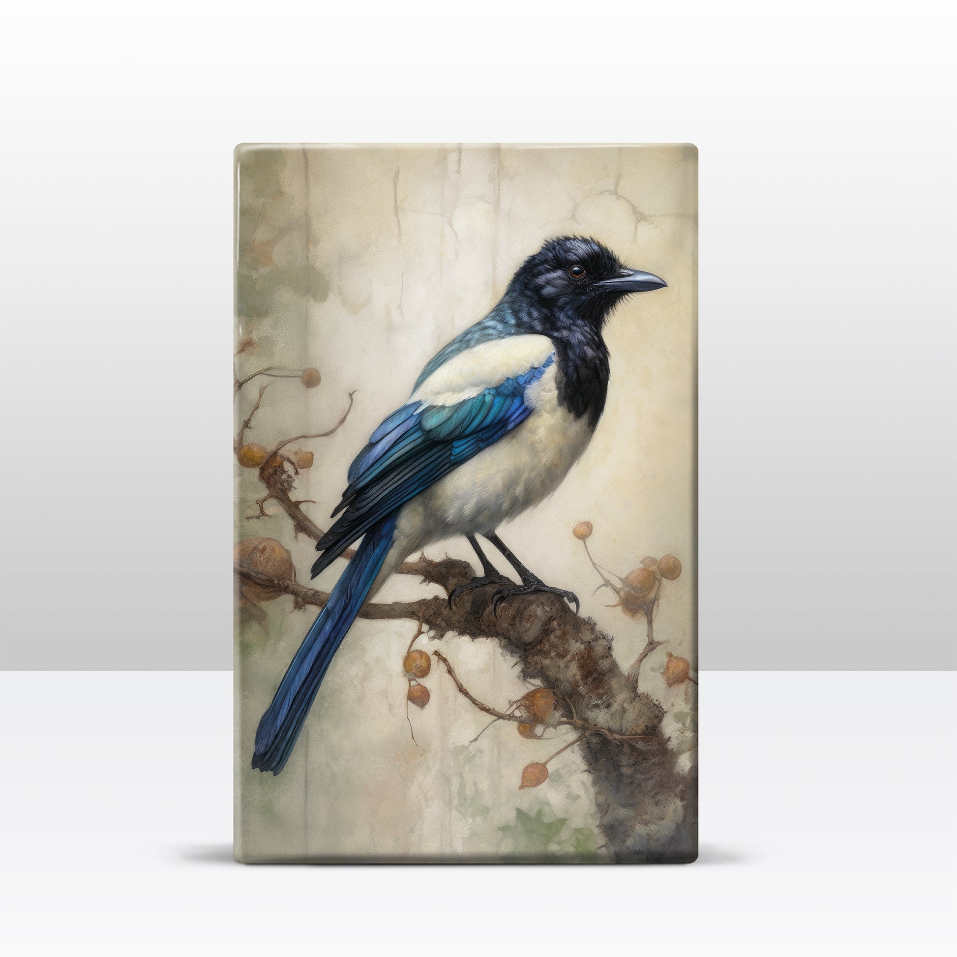 Laqueprint schilderij "Blauwe Ekster"