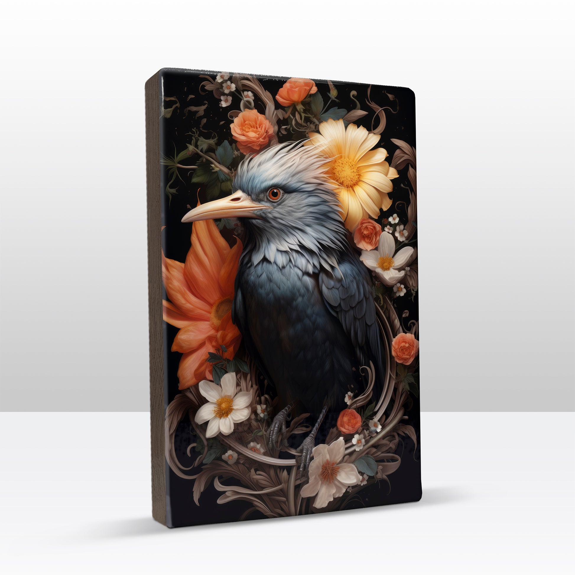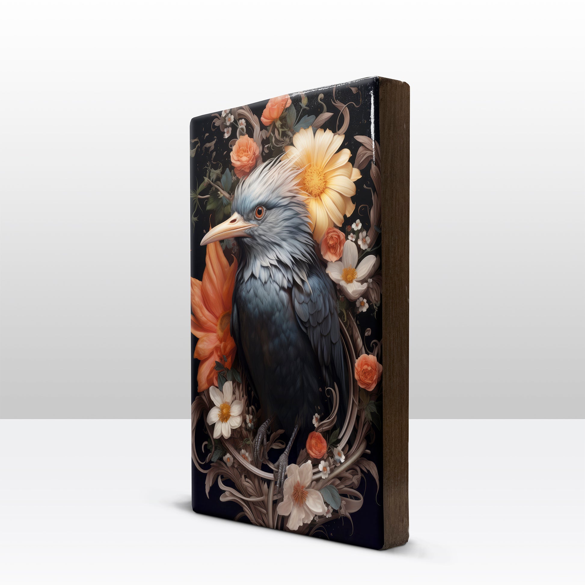 Blauwe vogel met bloemen - Laqueprint - 19,5 x 30 cm - LP315