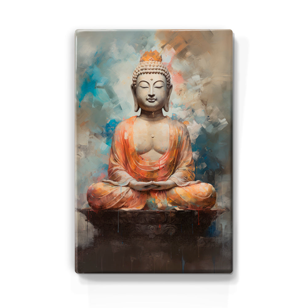 Laqueprint schilderij "Boeddha in oranje gewaad"
