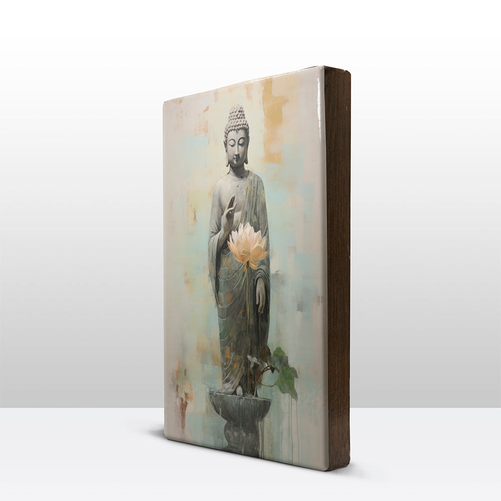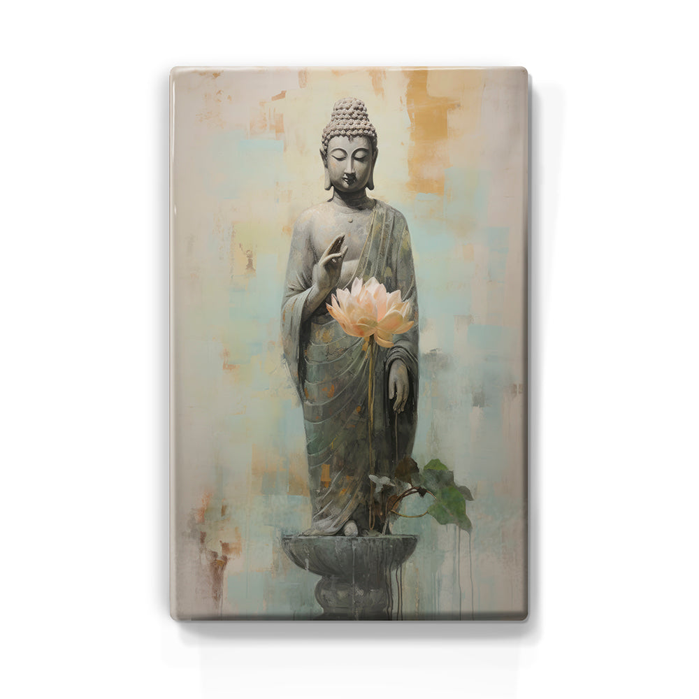 Boeddha met bloemen - Laqueprint - 19,5 x 30 cm - LP508