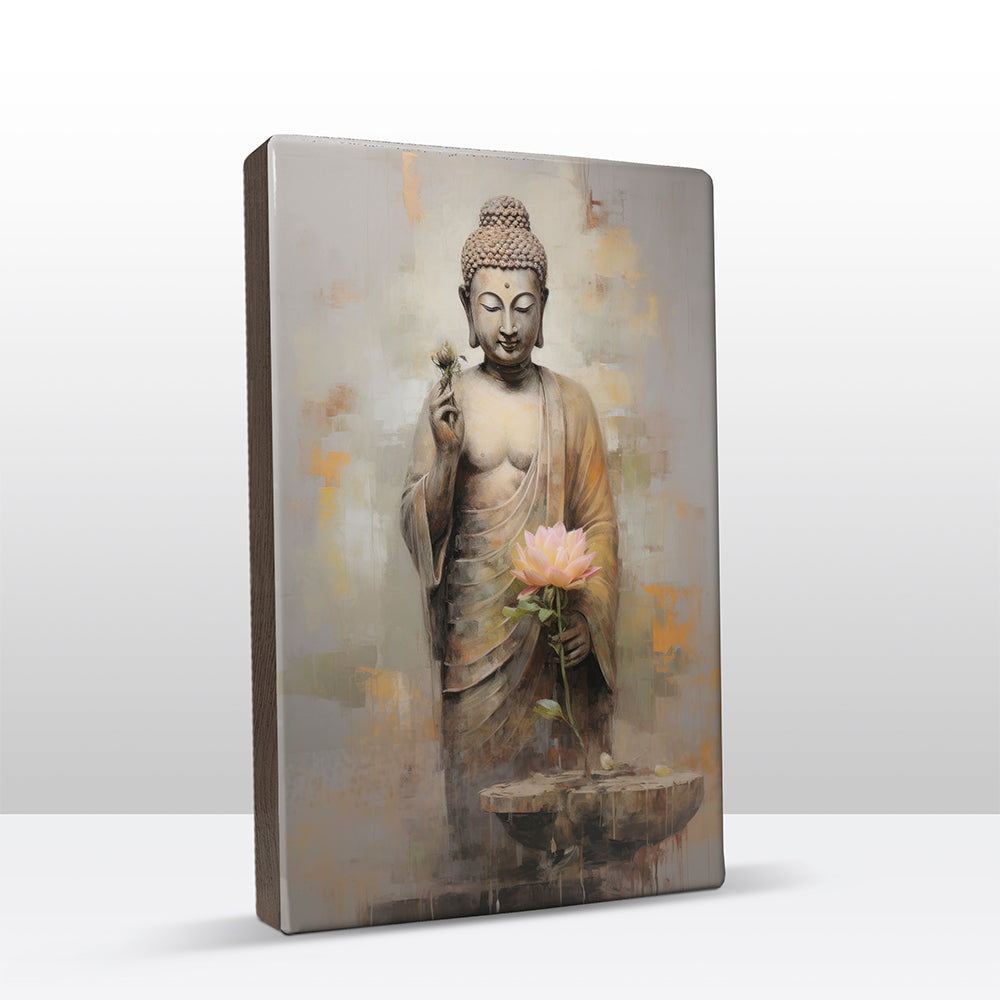 Boeddha met bloemen - Laqueprint - 19,5 x 30 cm - LP515