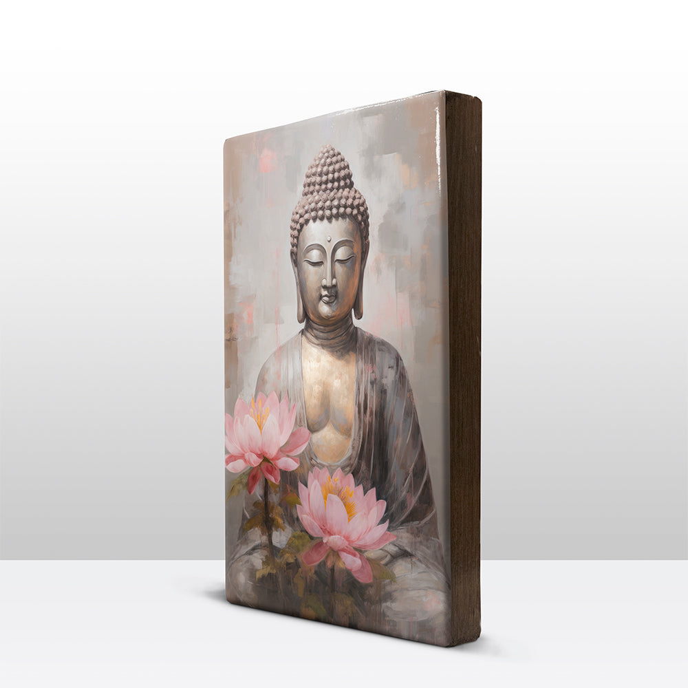 Boeddha met bloemen - Laqueprint - 19,5 x 30 cm - LP516
