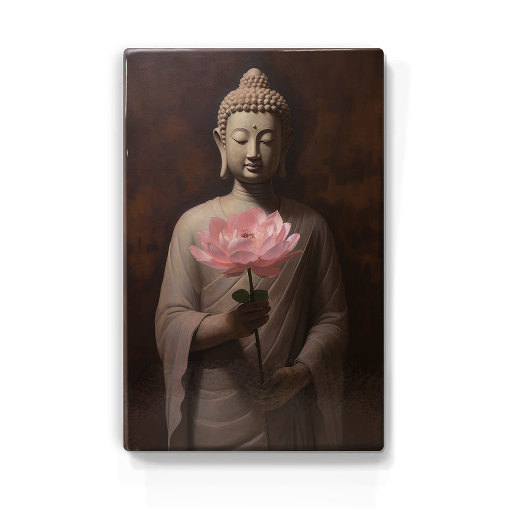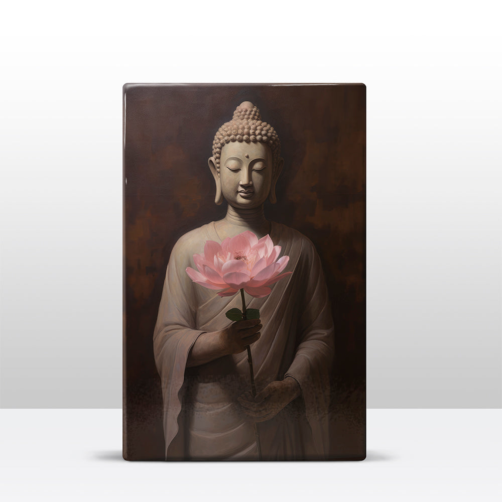 Boeddha met bloemen - Laqueprint - 19,5 x 30 cm - LP517