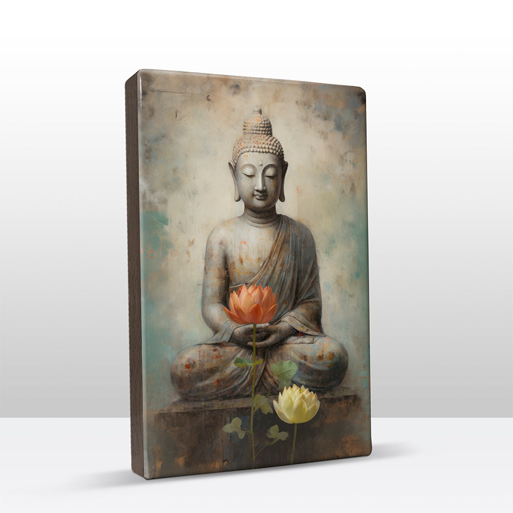 Boeddha met bloemen - Laqueprint - 19,5 x 30 cm - LP521