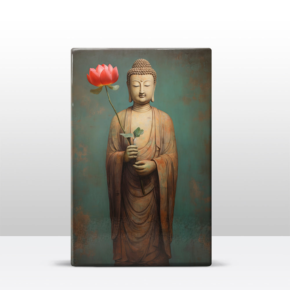 Boeddha met bloemen - Laqueprint - 19,5 x 30 cm - LP523