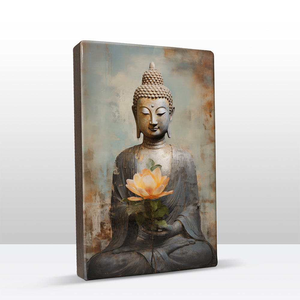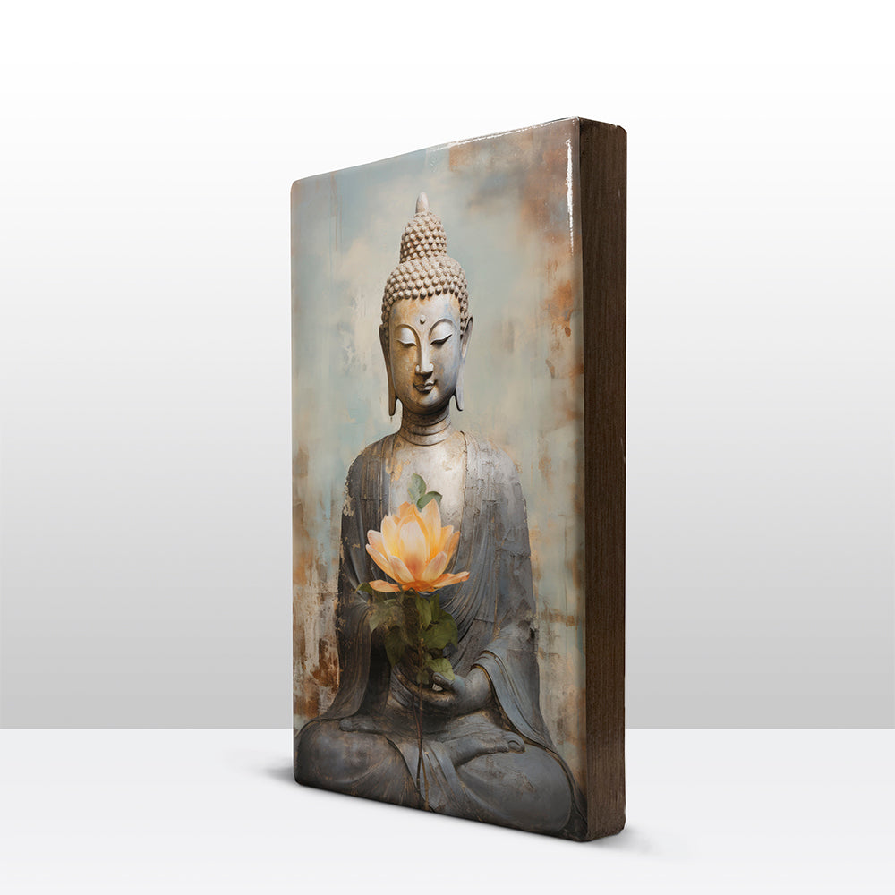 Boeddha met bloemen - Laqueprint - 19,5 x 30 cm - LP531