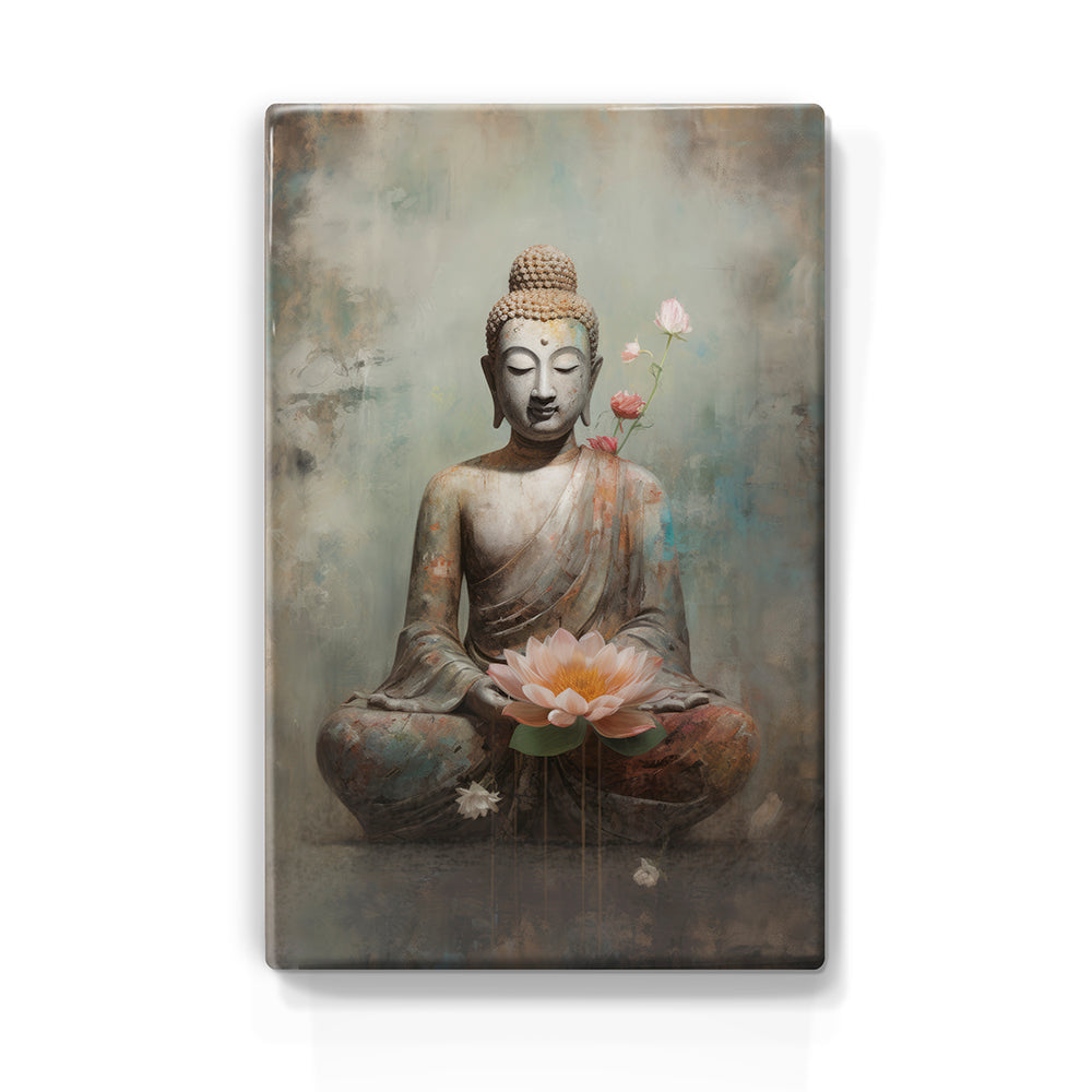Laqueprint schilderij "Boeddha met bloemen"