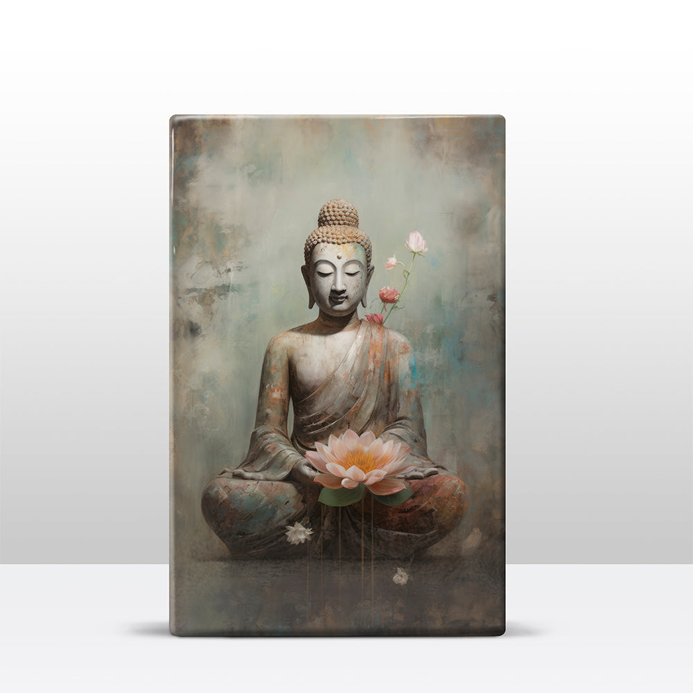 Boeddha met bloemen - Laqueprint - 19,5 x 30 cm - LP535