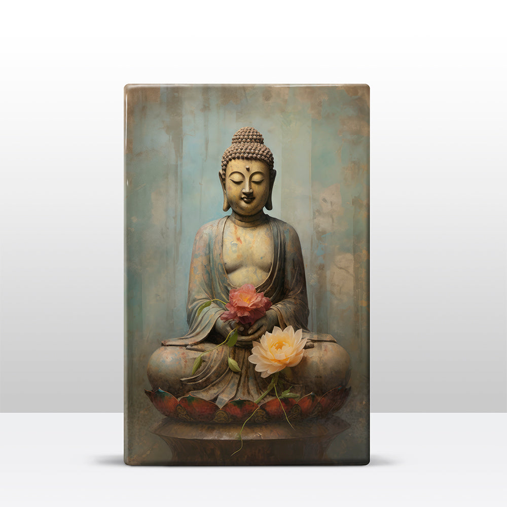 Boeddha met bloemen - Mini Laqueprint - 9,6 x 14,7 cm - LPS500