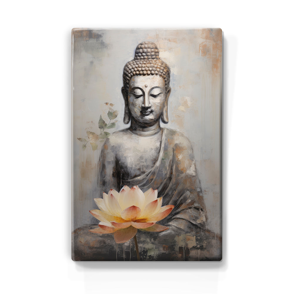 Laqueprint schilderij "Boeddha met bloemen"