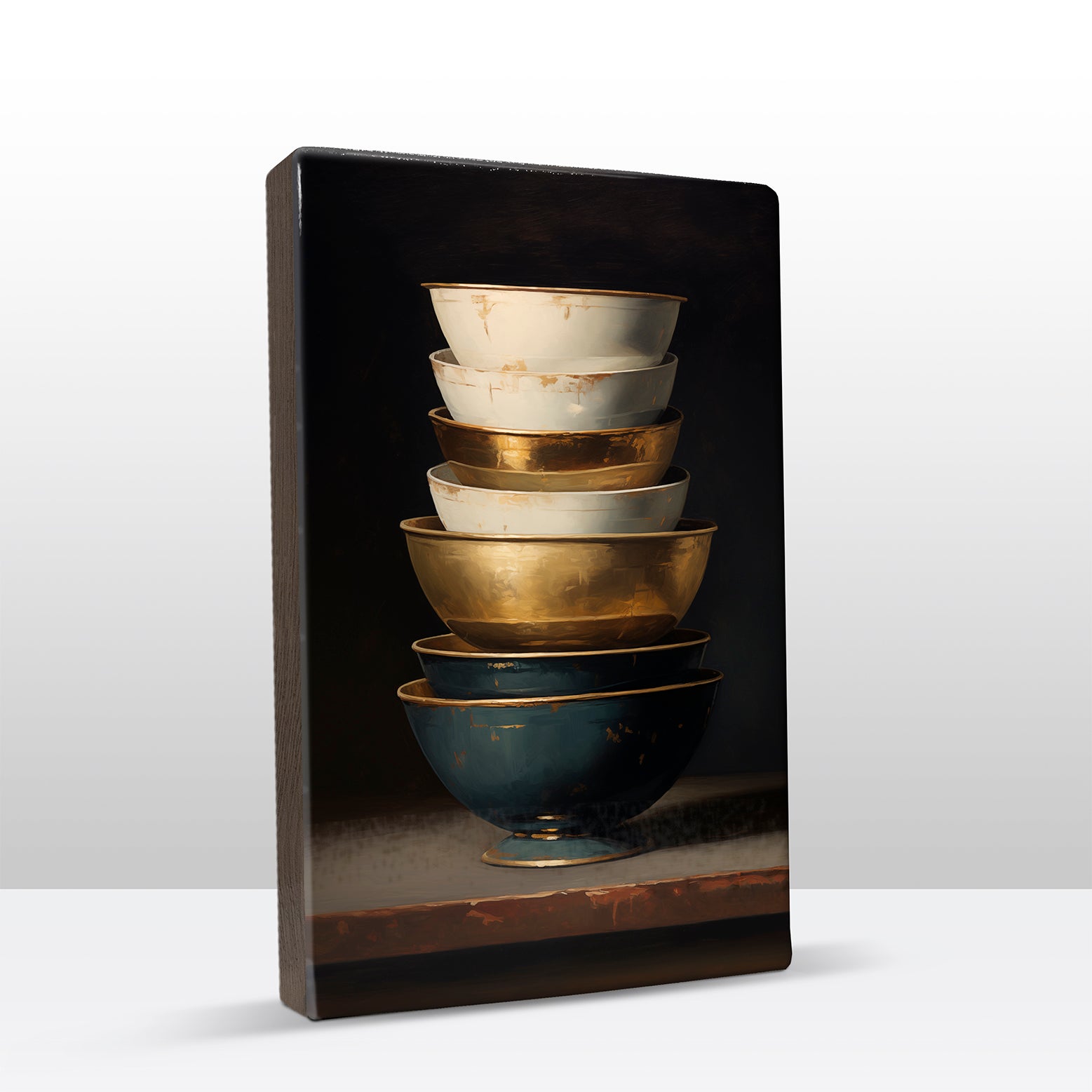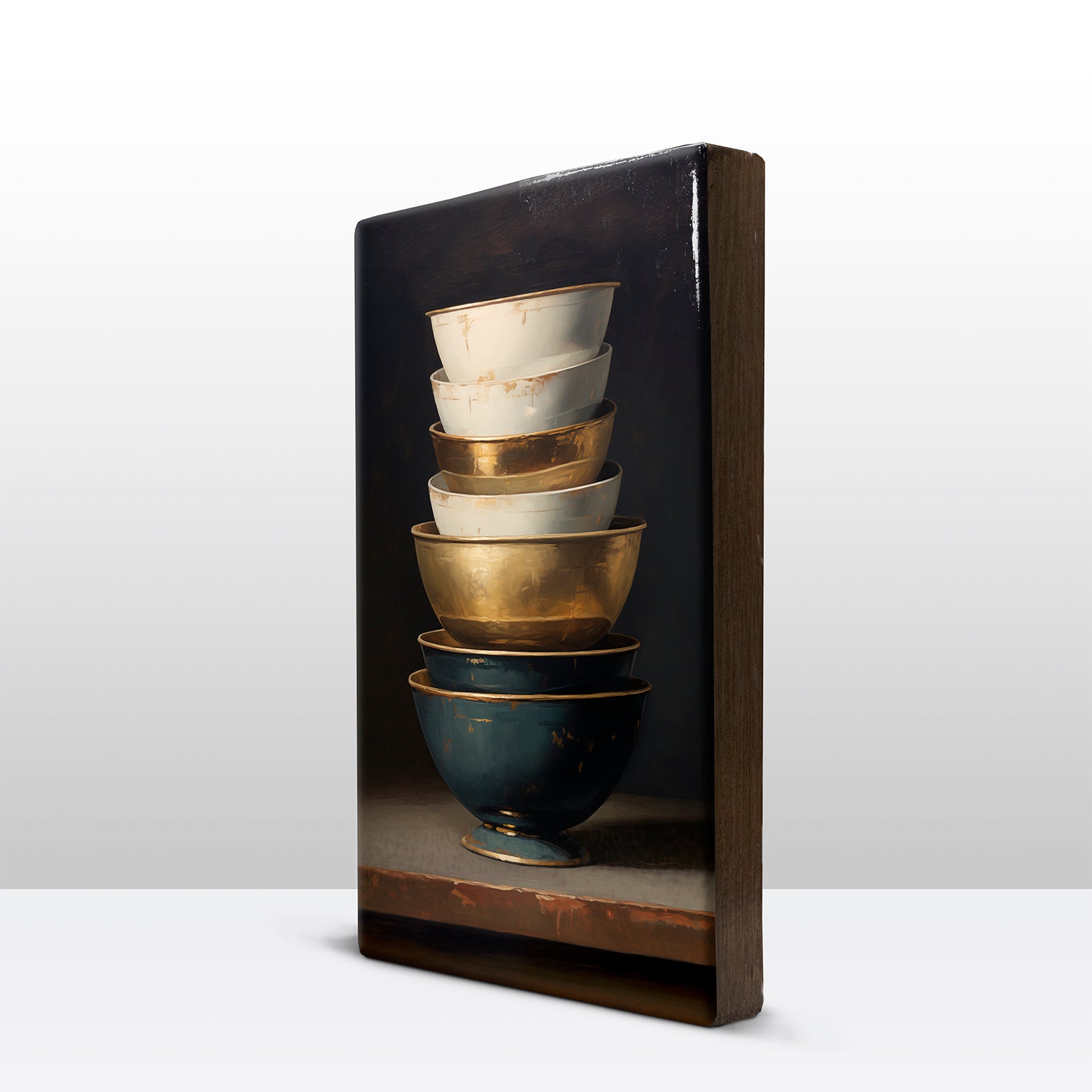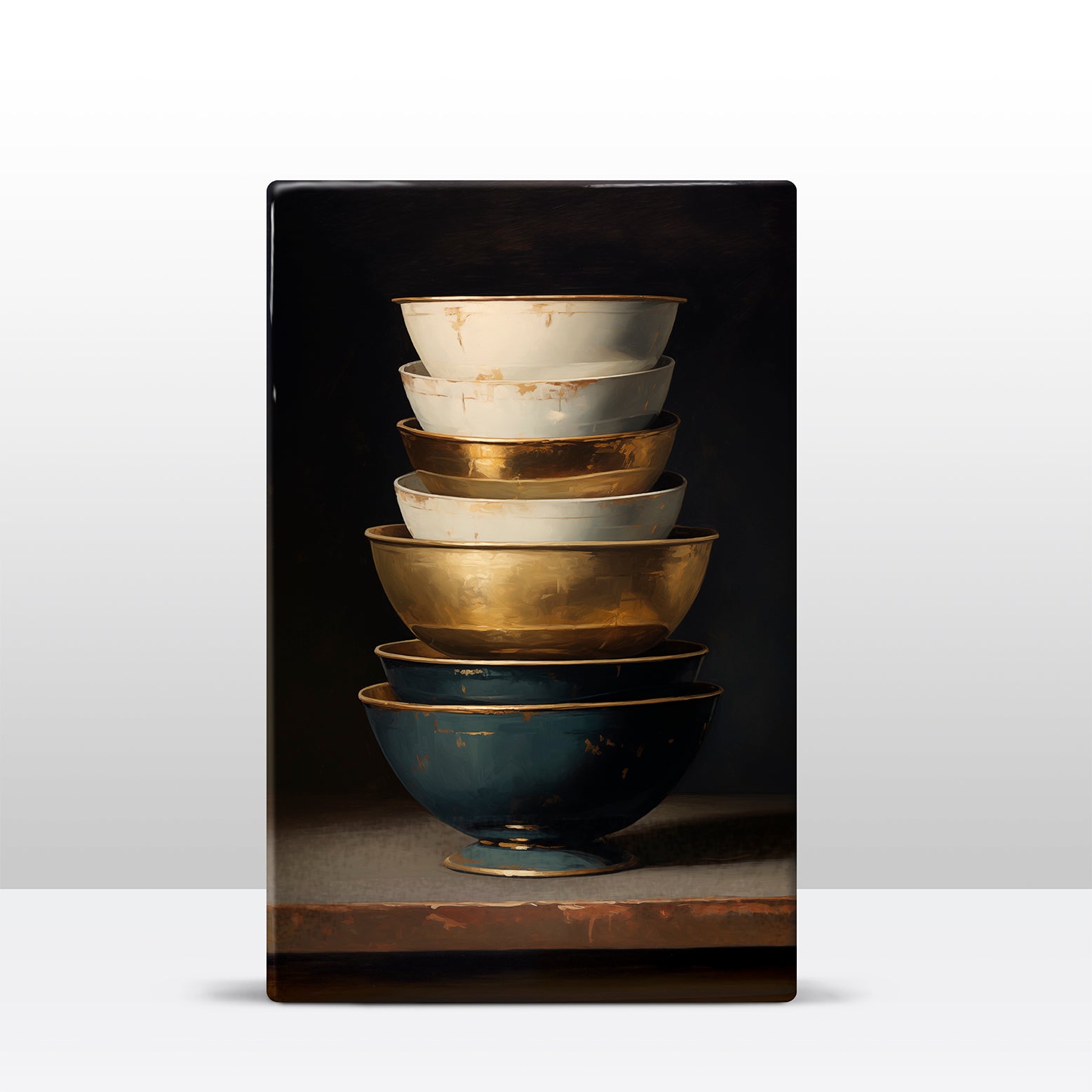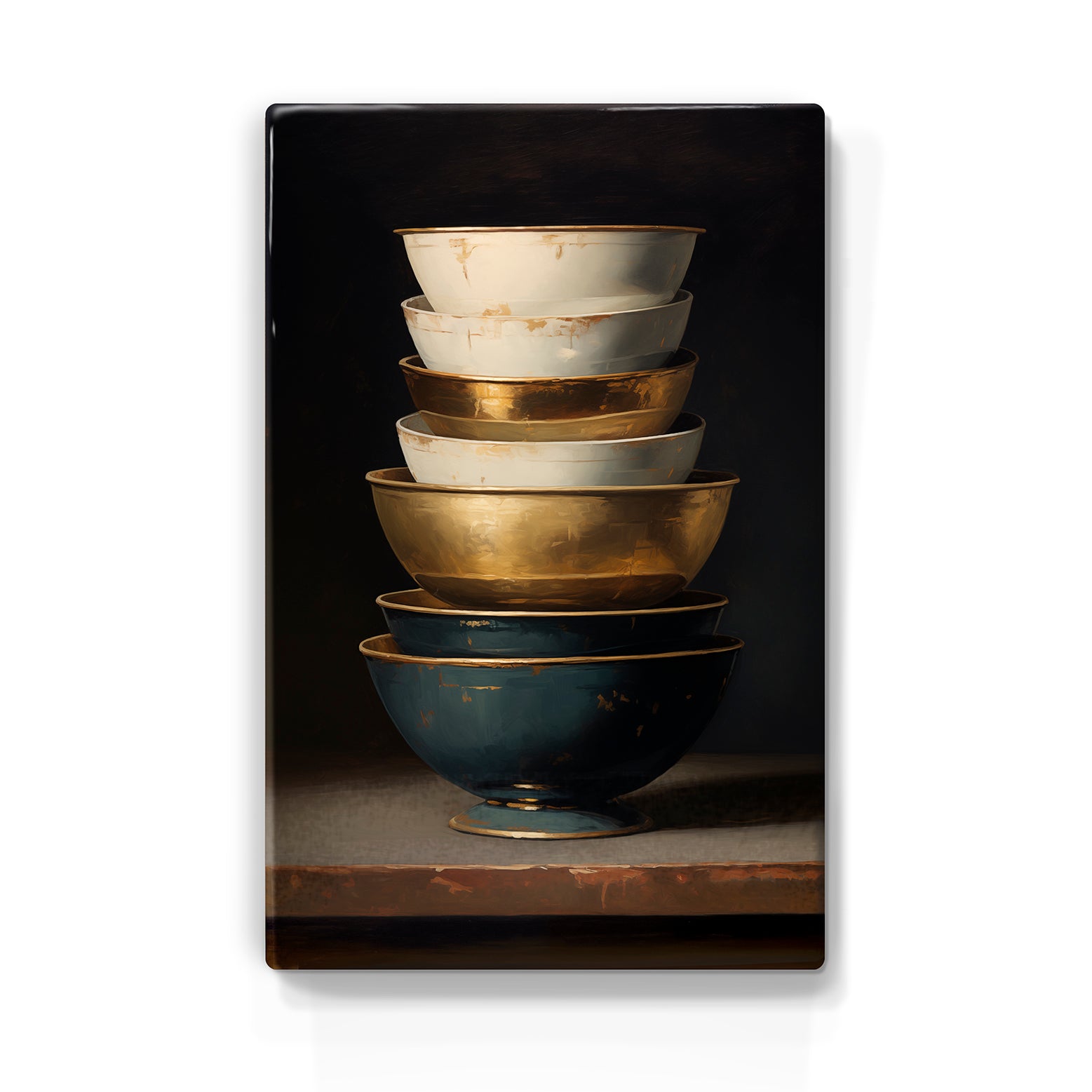 Laqueprint schilderij "Stapel kommen Goud - Blauw 3"