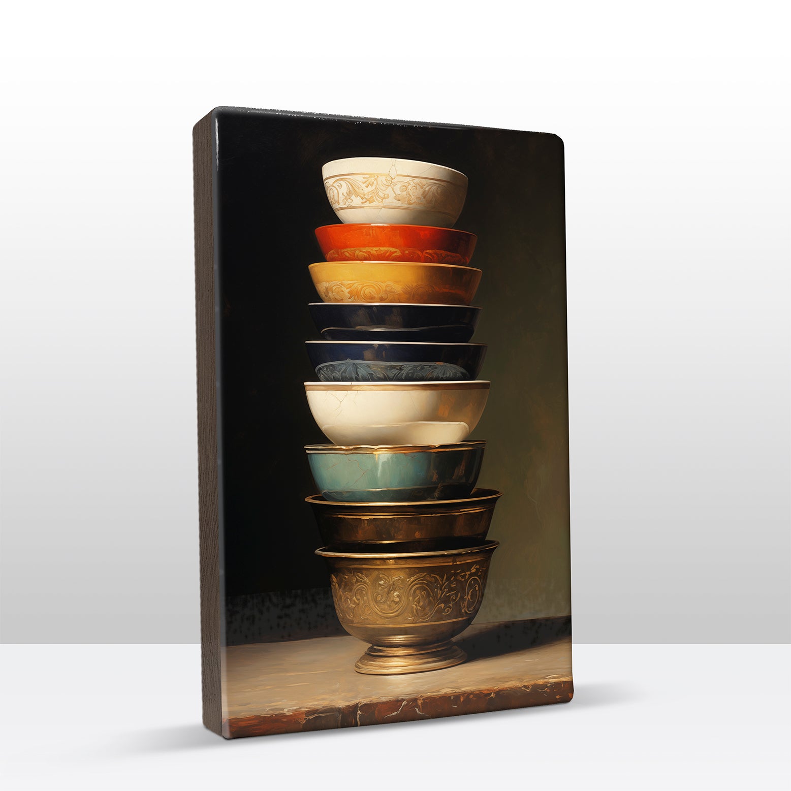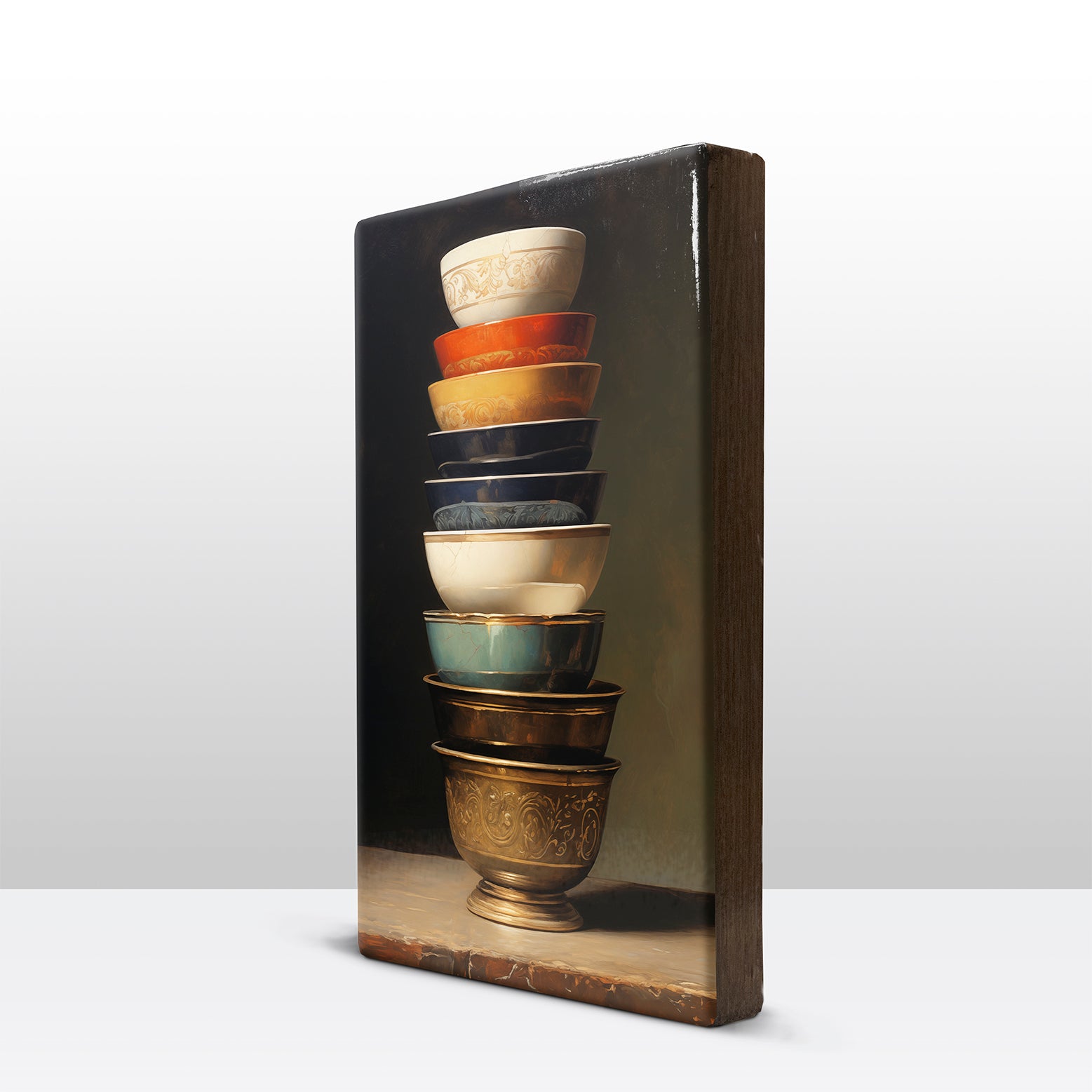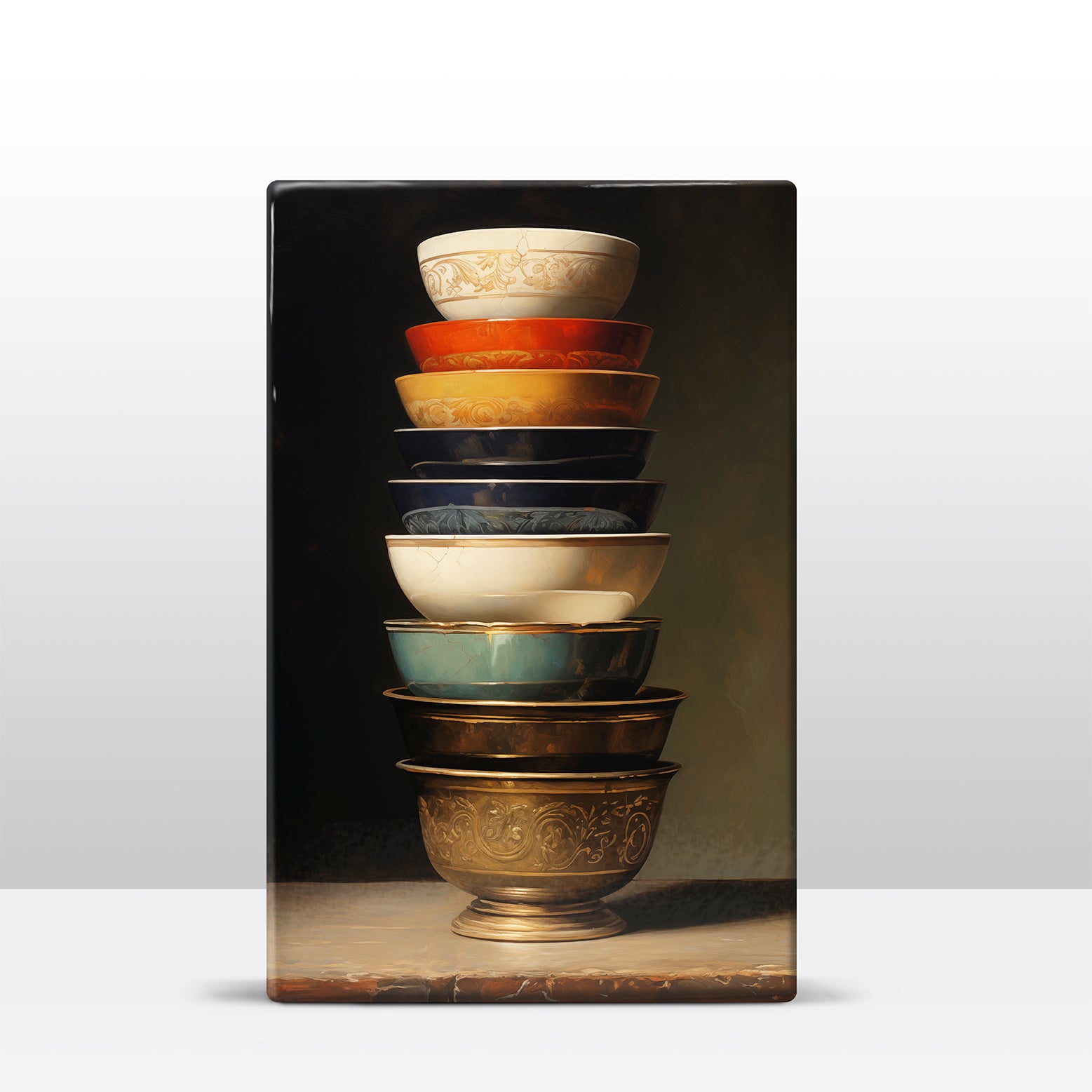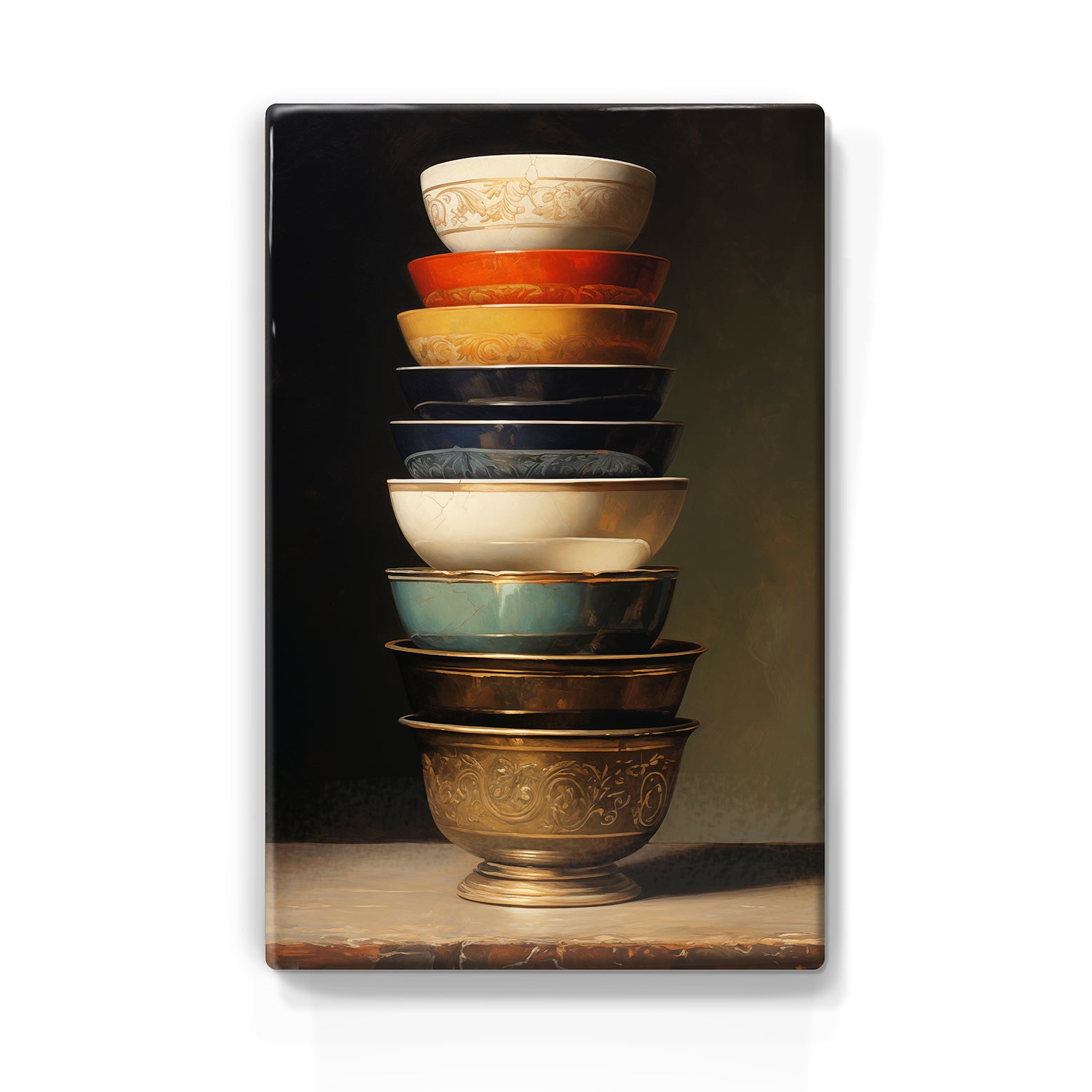 Laqueprint schilderij "Stapel gekleurde kommen 1"