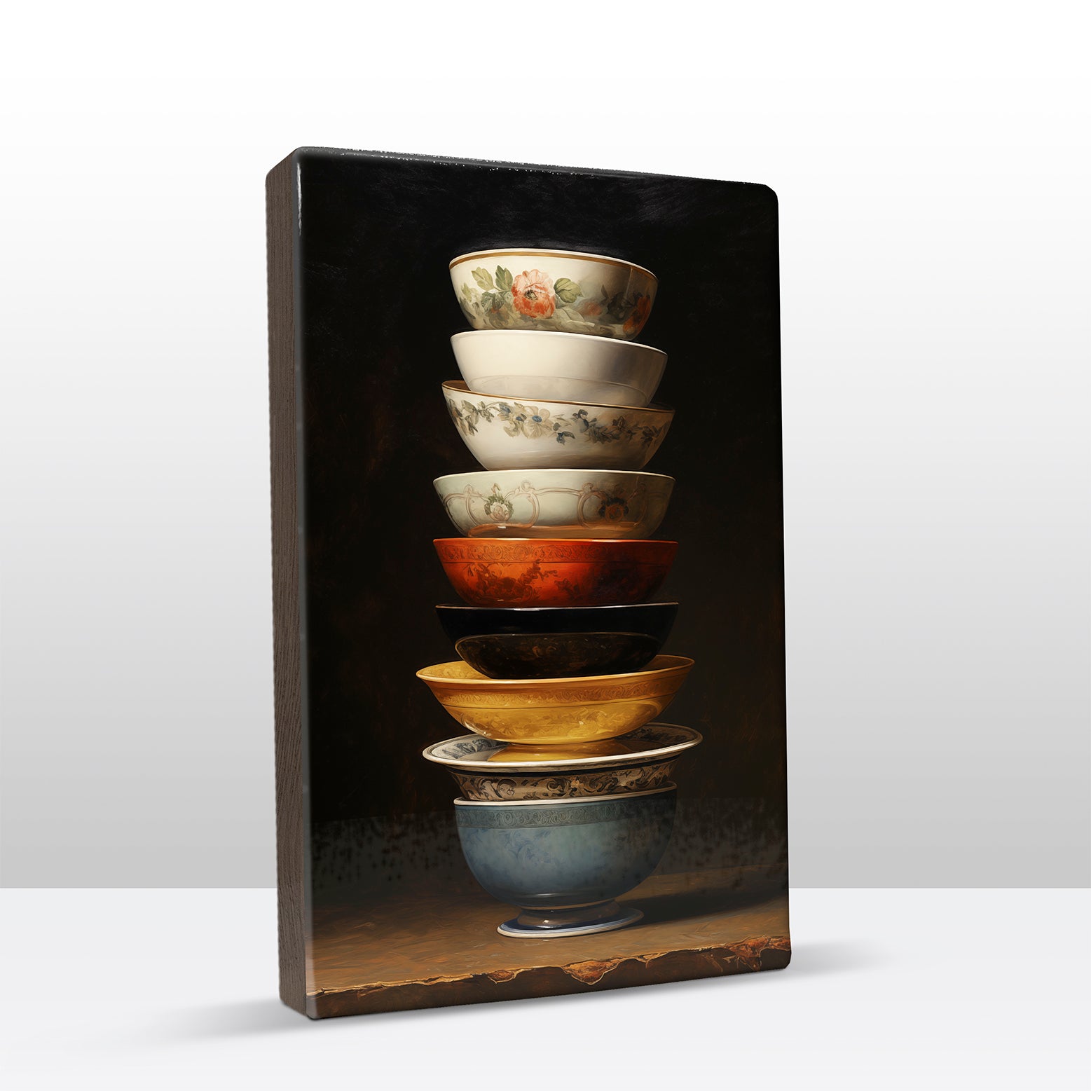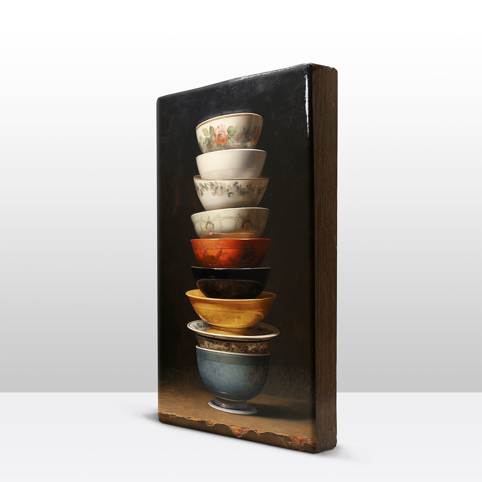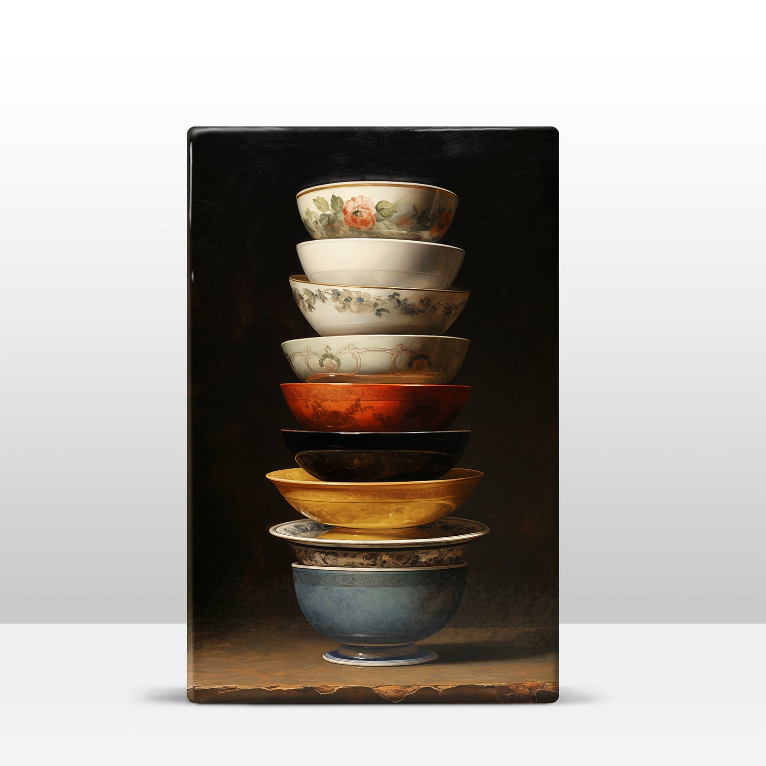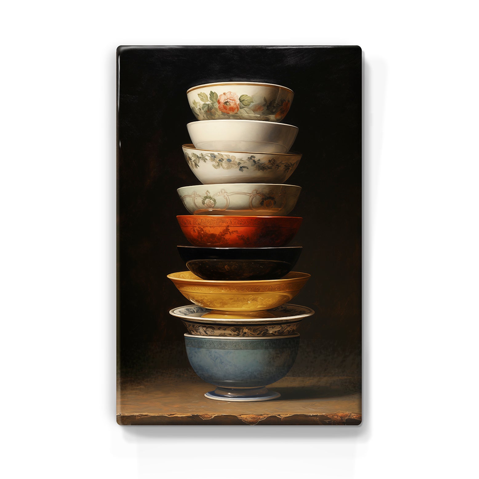 Laqueprint schilderij "Stapel gekleurde kommen 2"