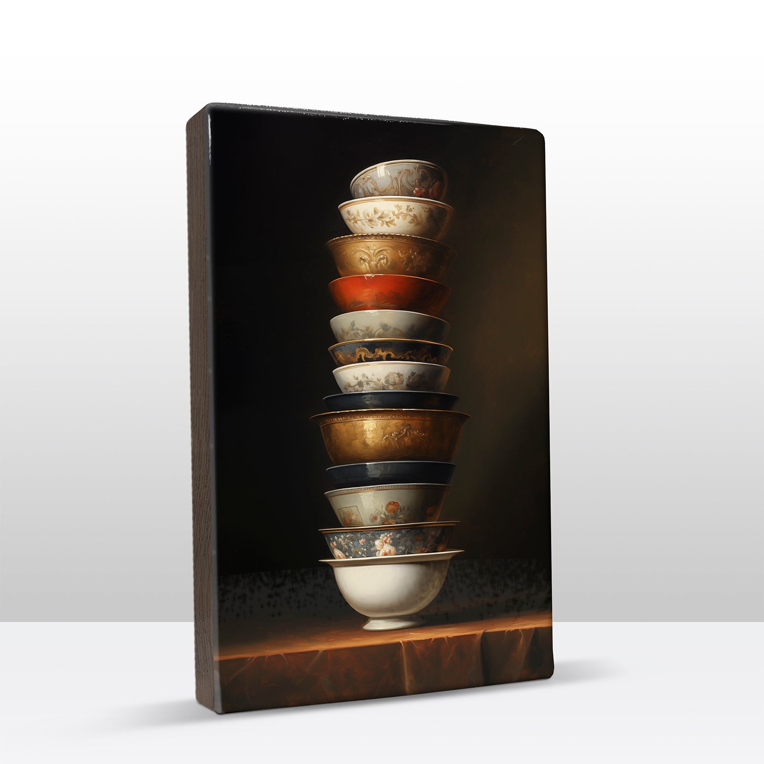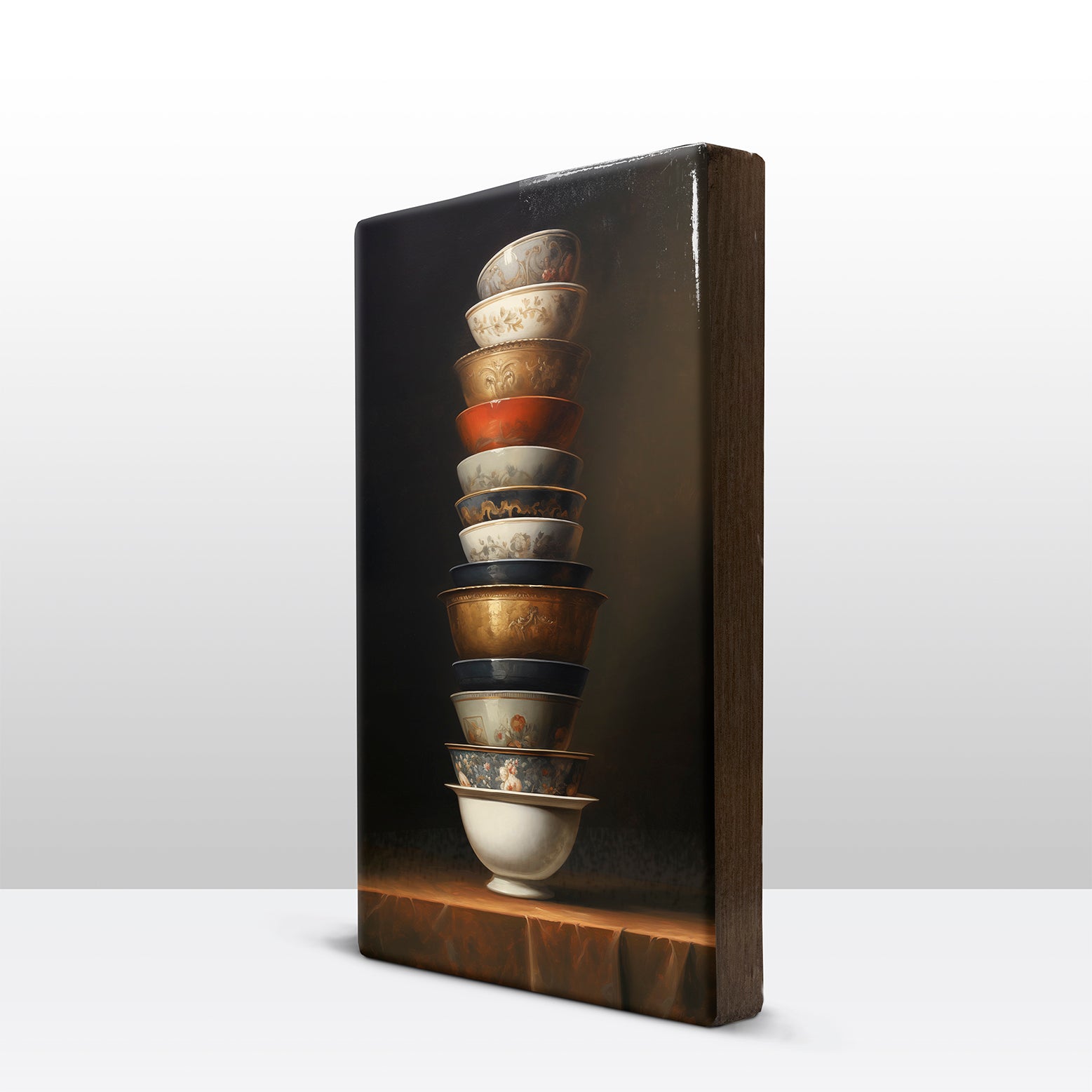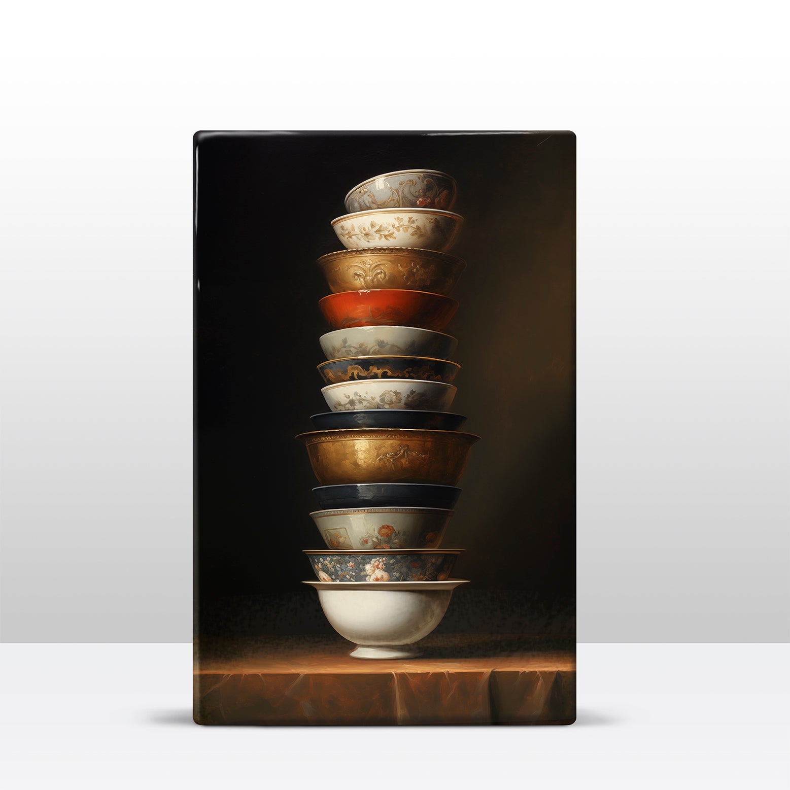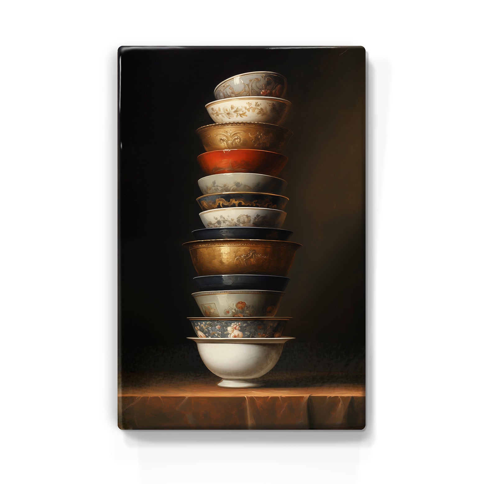 Laqueprint schilderij "Stapel gekleurde kommen 4"