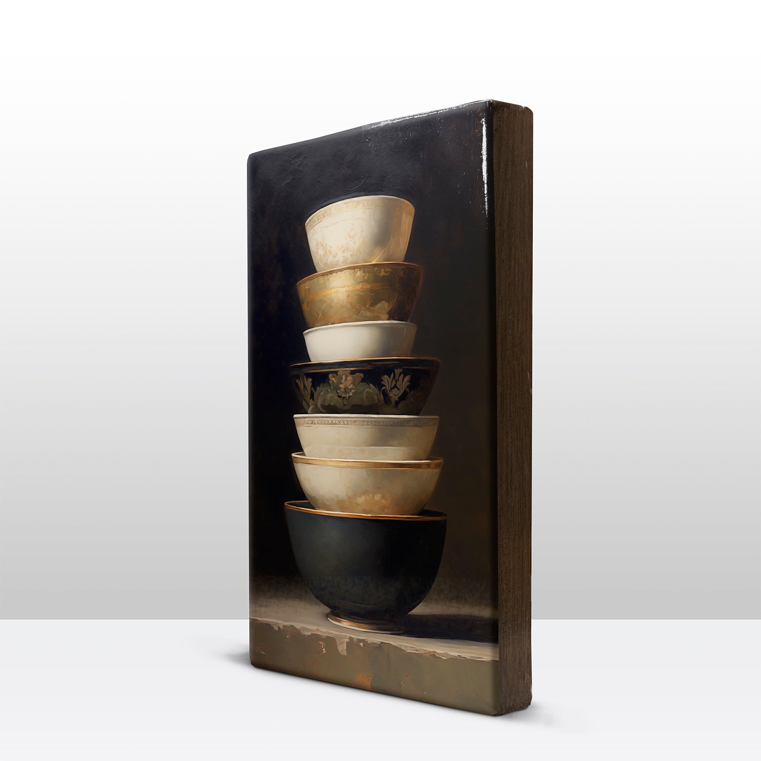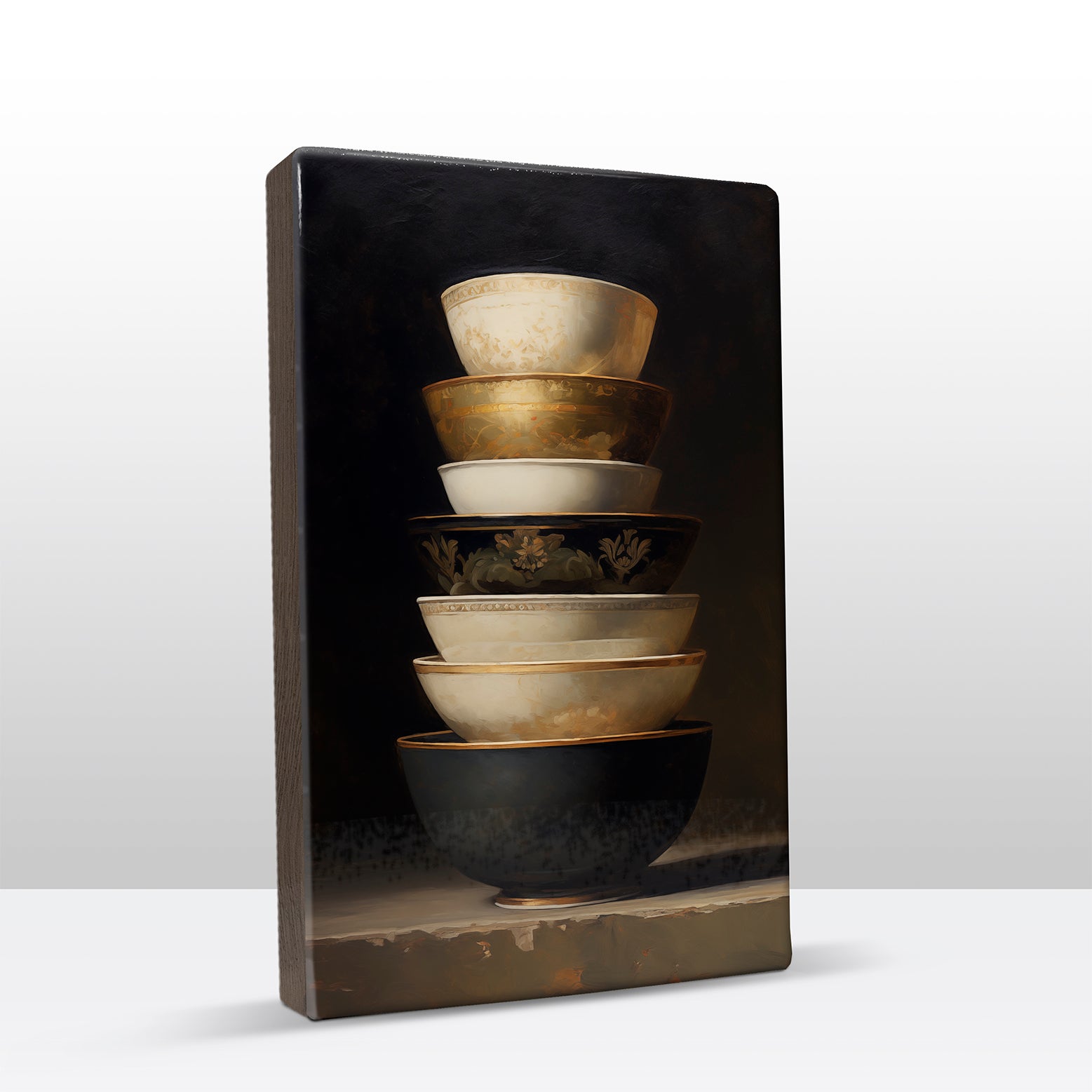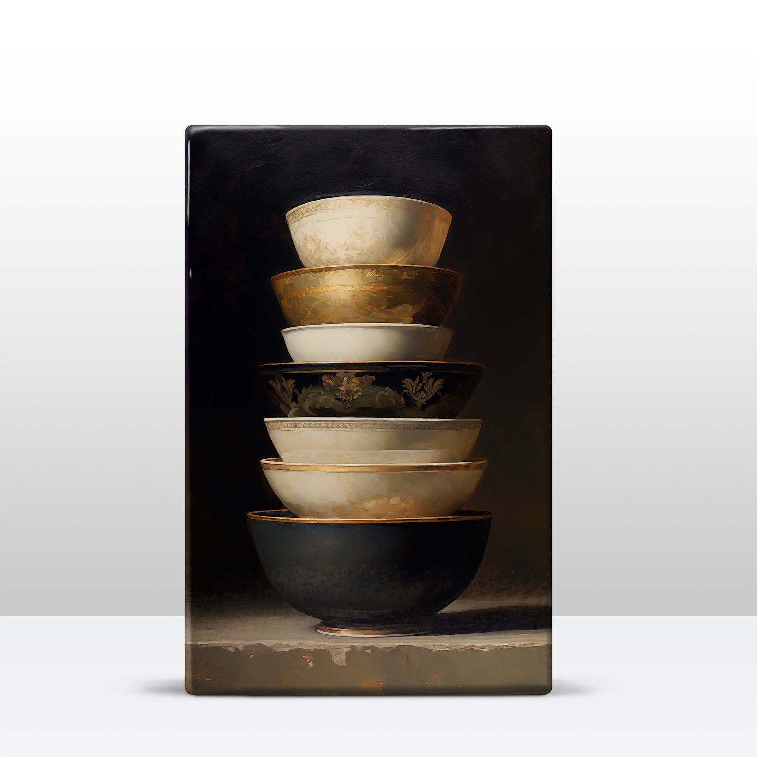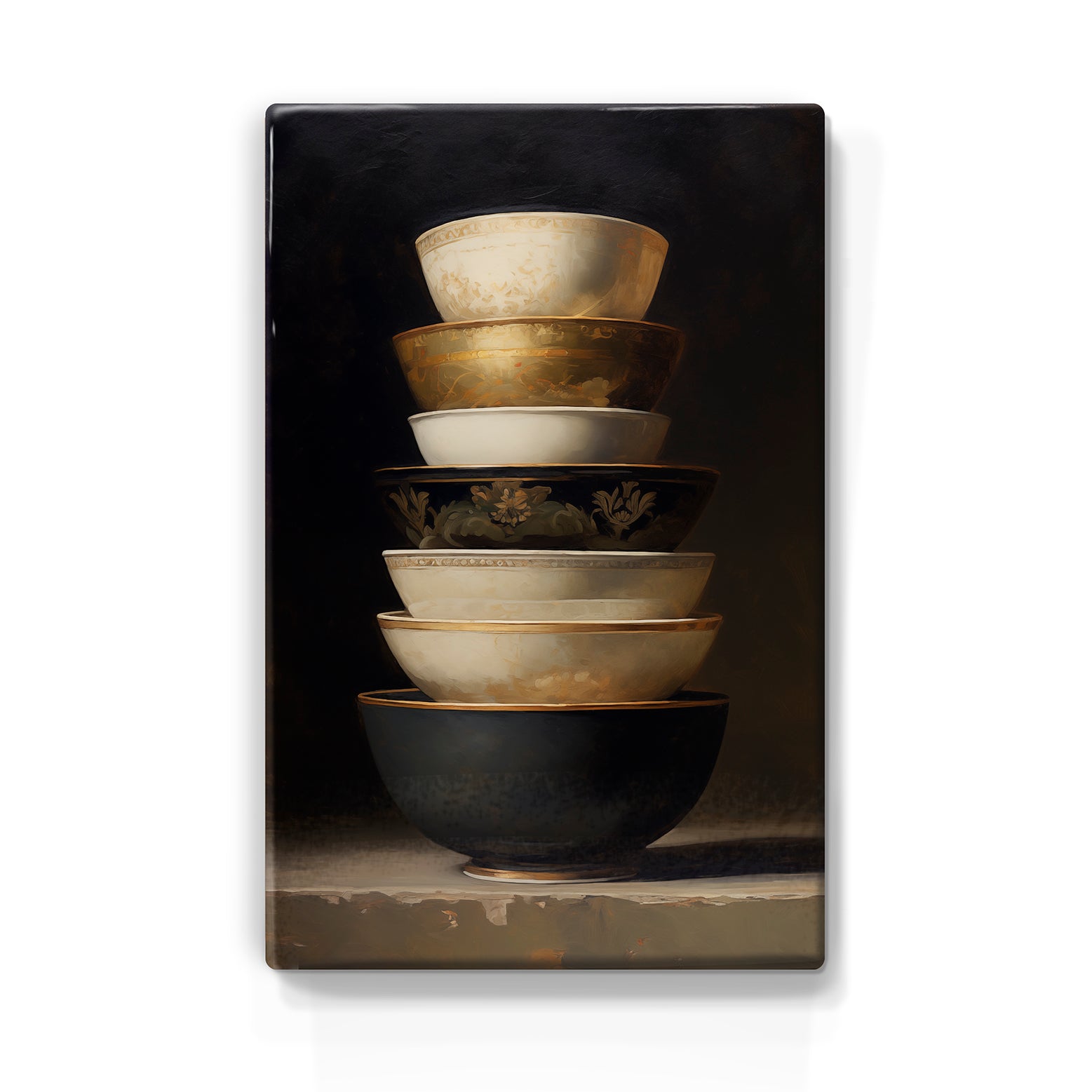 Laqueprint schilderij "Kommen Zwart - Goud"