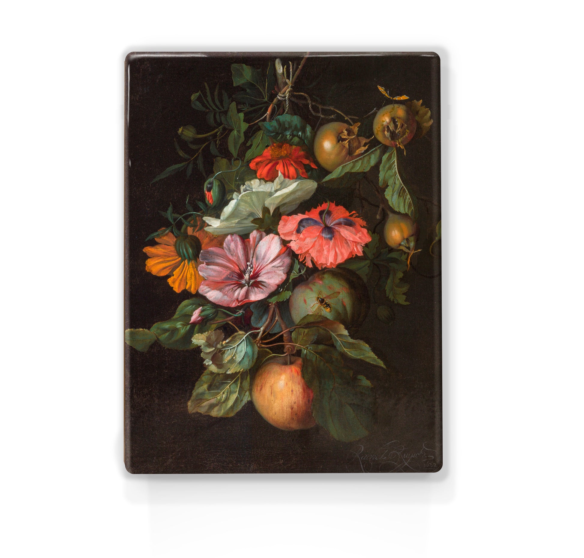 Laqueprint - Festoen van vruchten en bloemen hangend aan een spijker - Rachel Ruysch - 19,5 x 26 cm - LP277