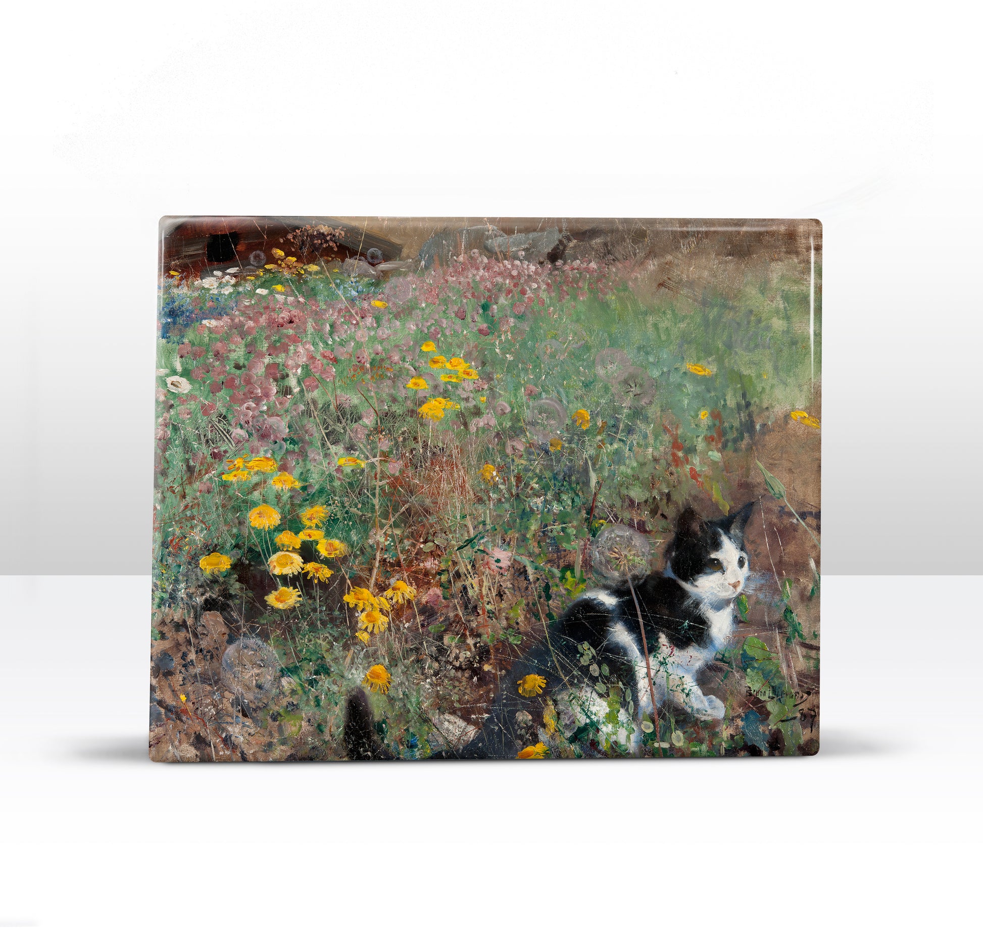 Laqueprint - Kat in een bloemenweide - Bruno Liljefors - 24 x 19,5 cm - LP258