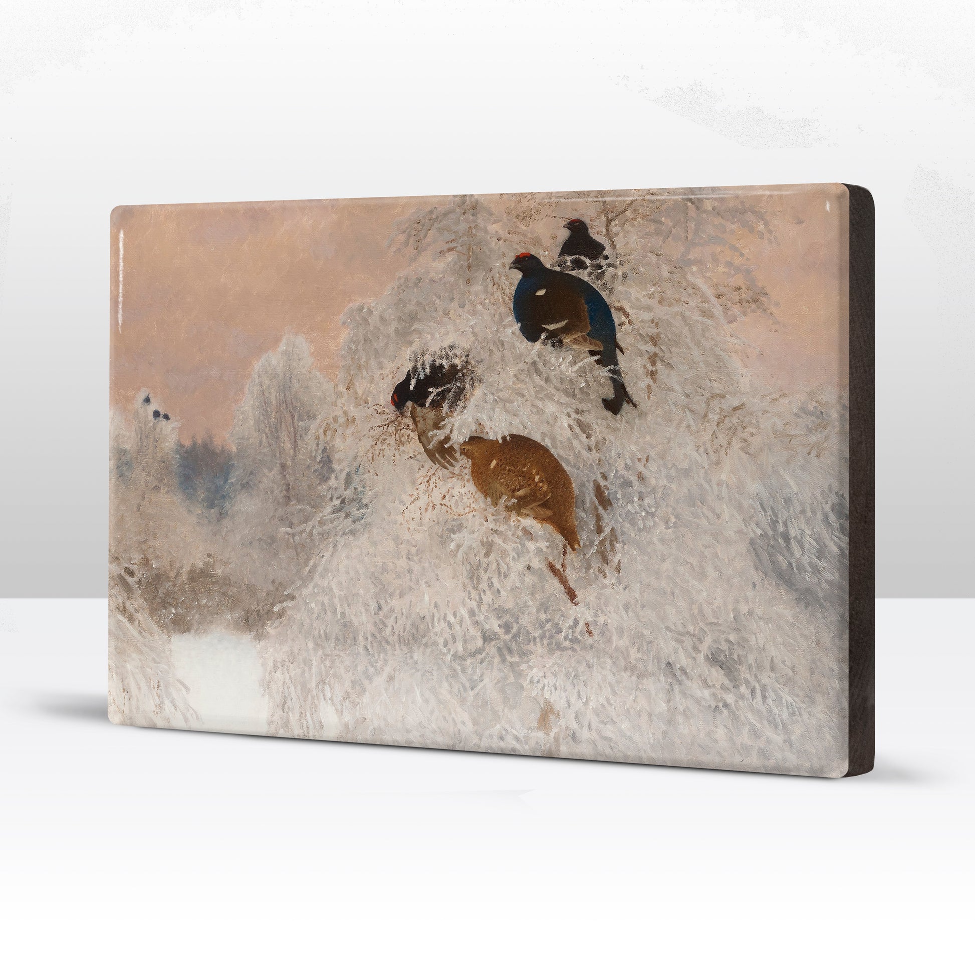 Laqueprint - Korhoenders in winterlandschap - Bruno Liljefors - 30 x 19,5 cm - LP218