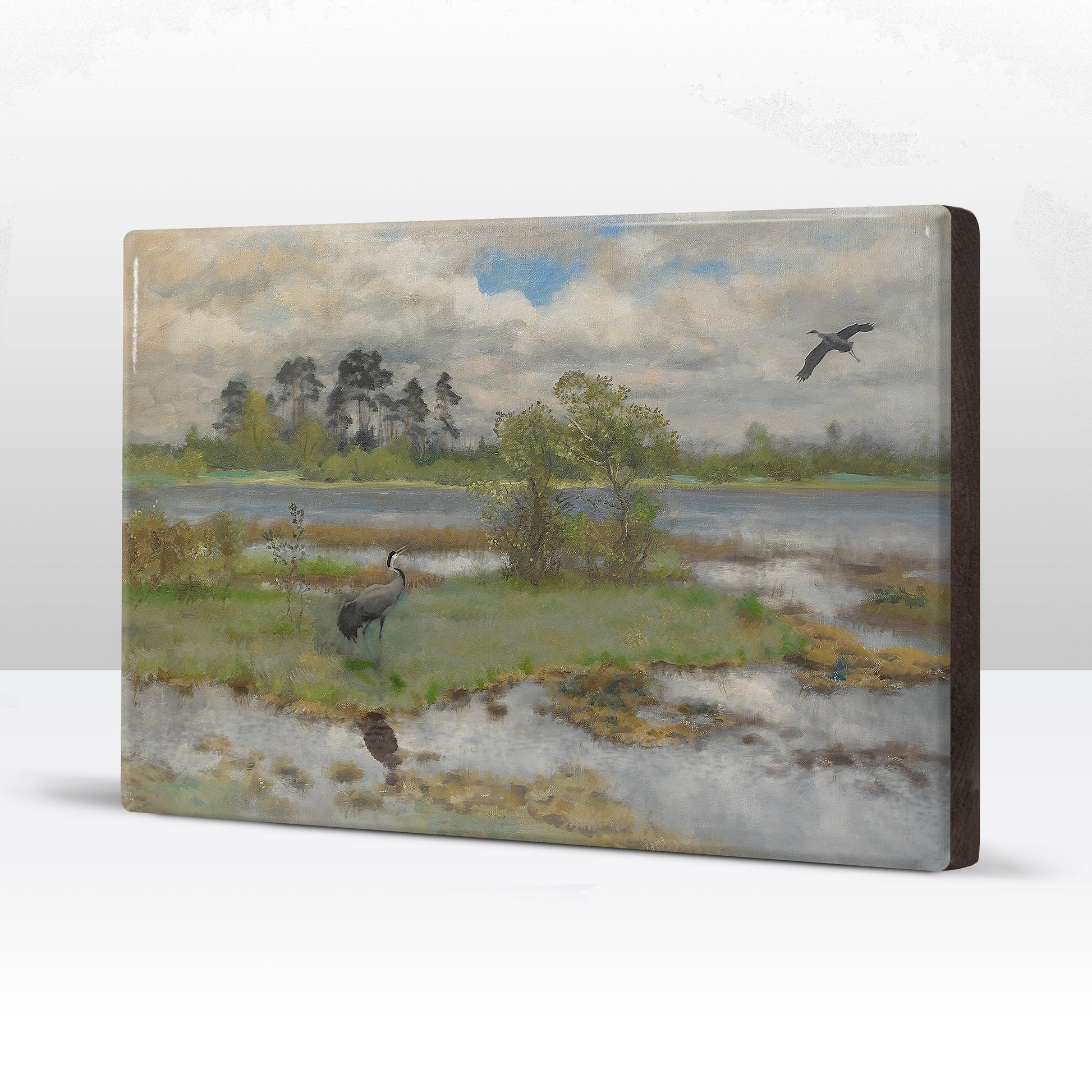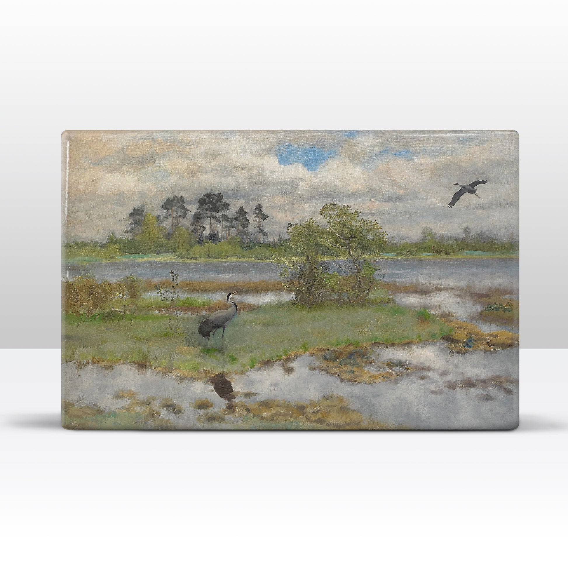Laqueprint - Landschap met kraanvogels aan het water - Bruno Liljefors - 30 x 19,5 cm - LP226