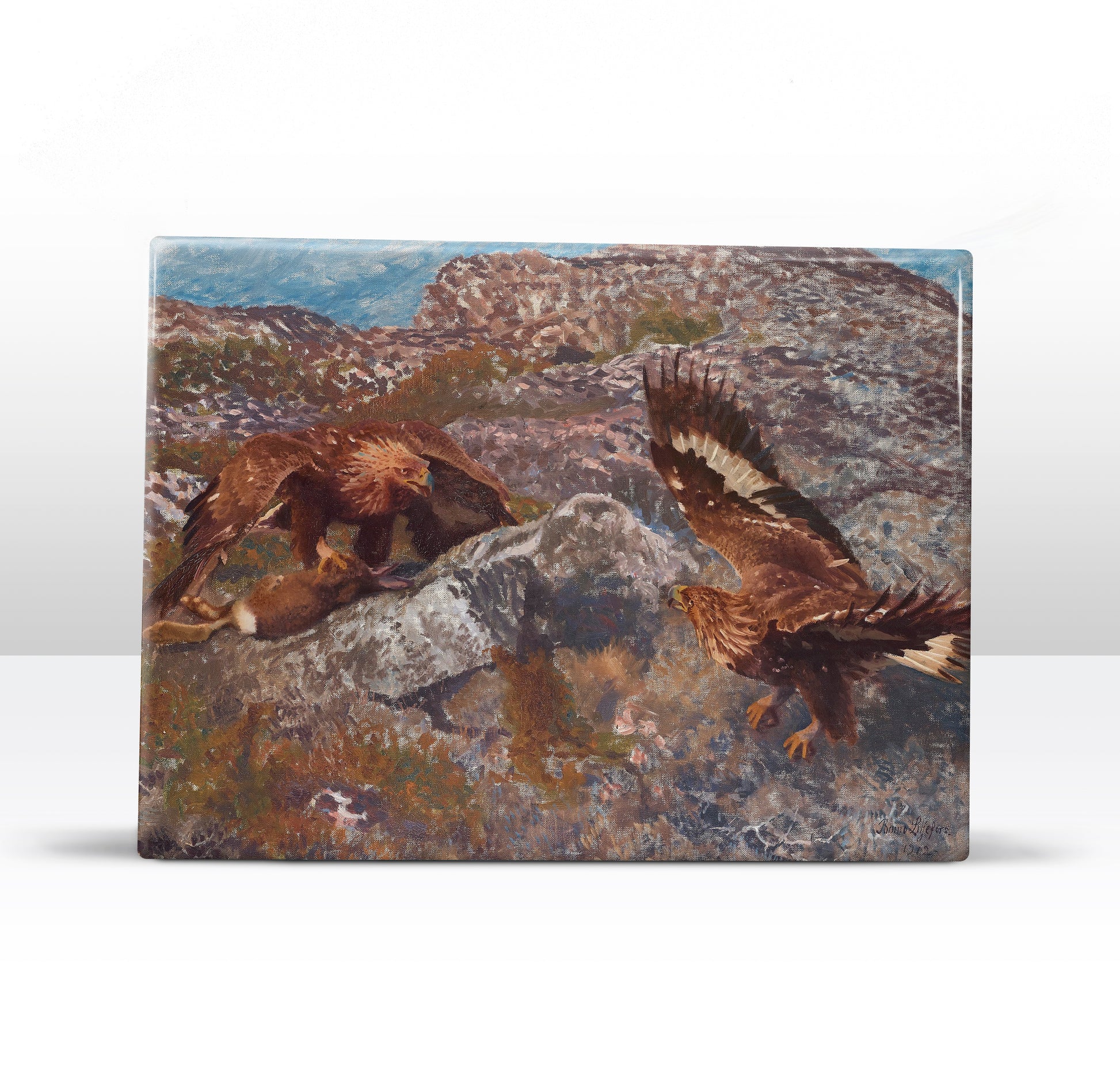 Laqueprint - Steenarenden vechten om een haas - Bruno Liljefors - 26 x 19,5 cm - LP253