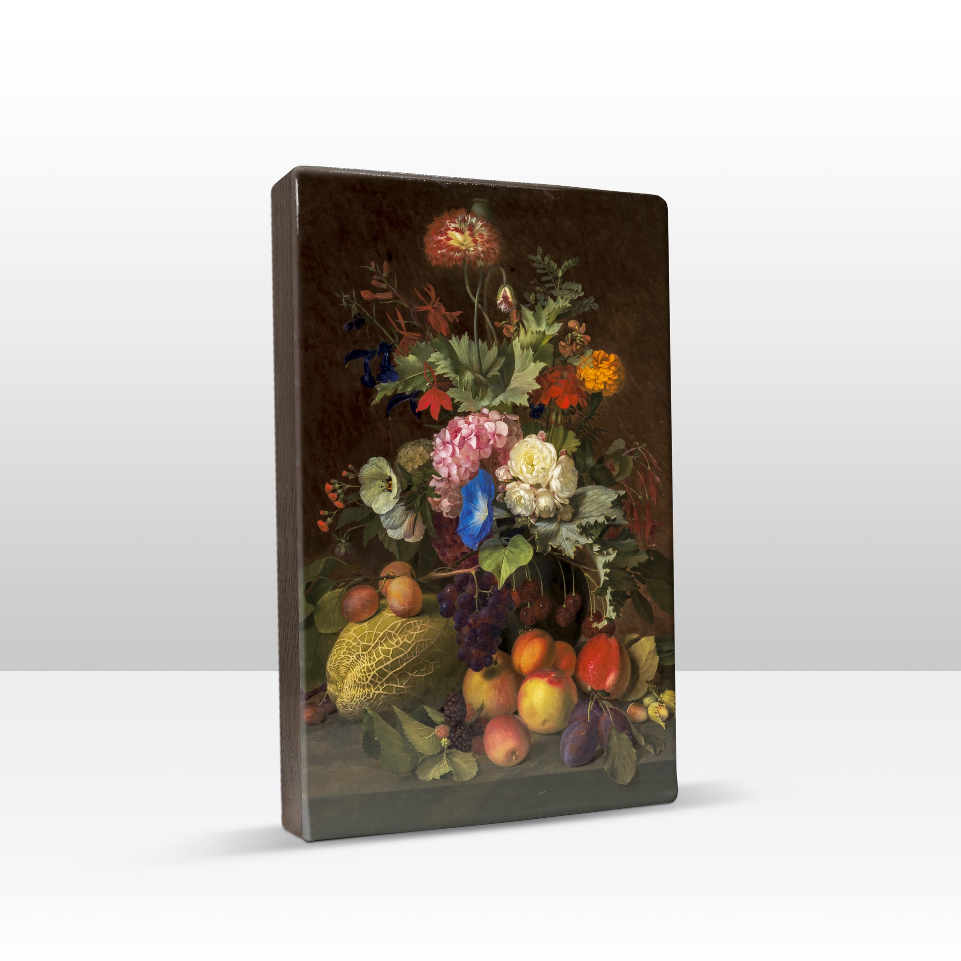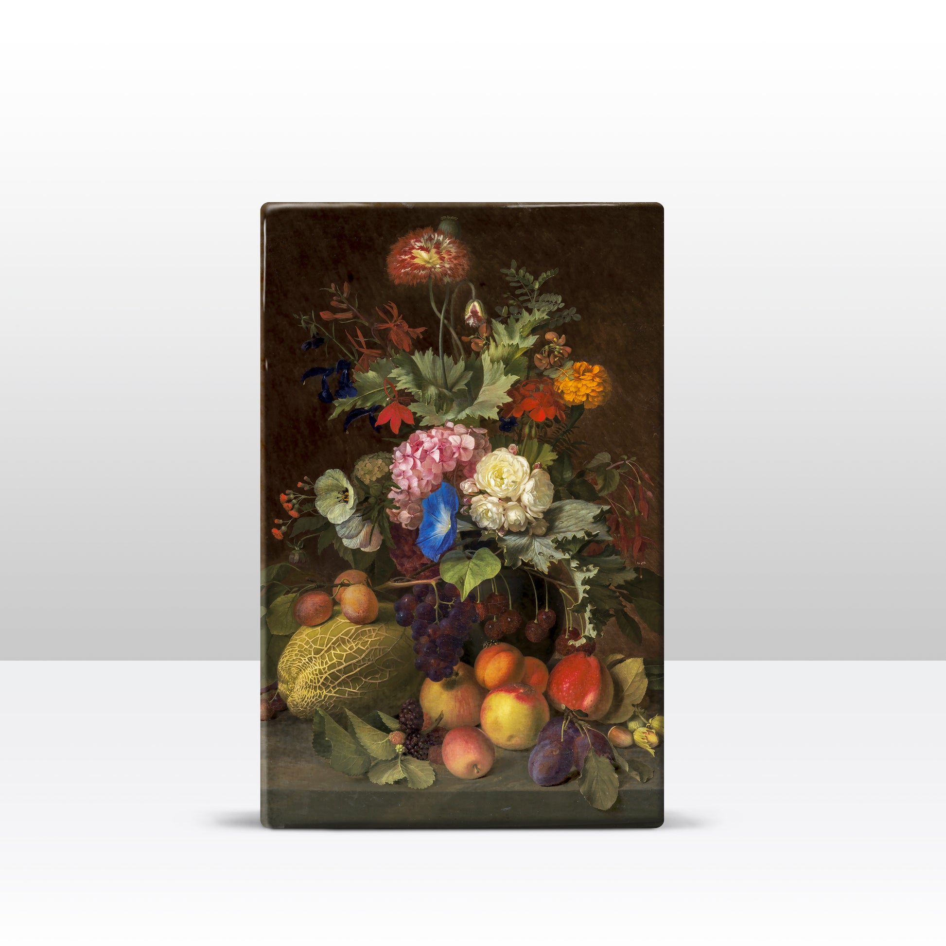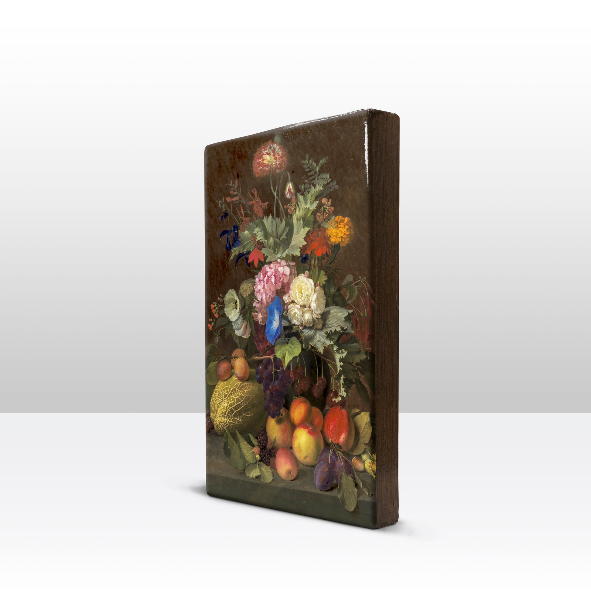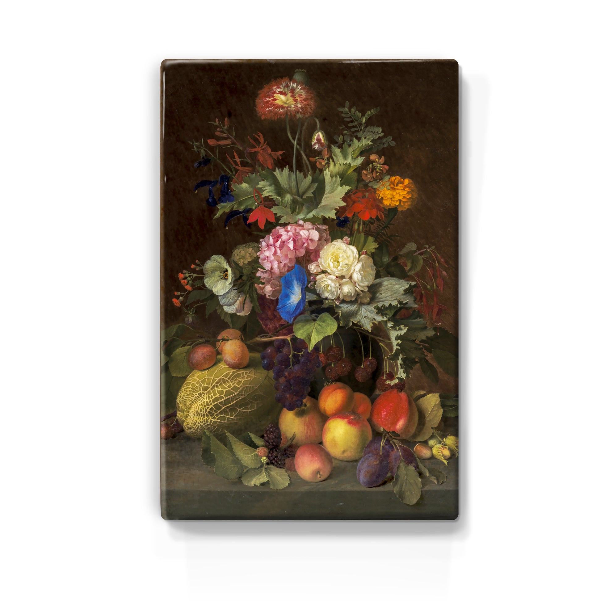 Laqueprint schilderij "Stilleven met fruit en bloemen"