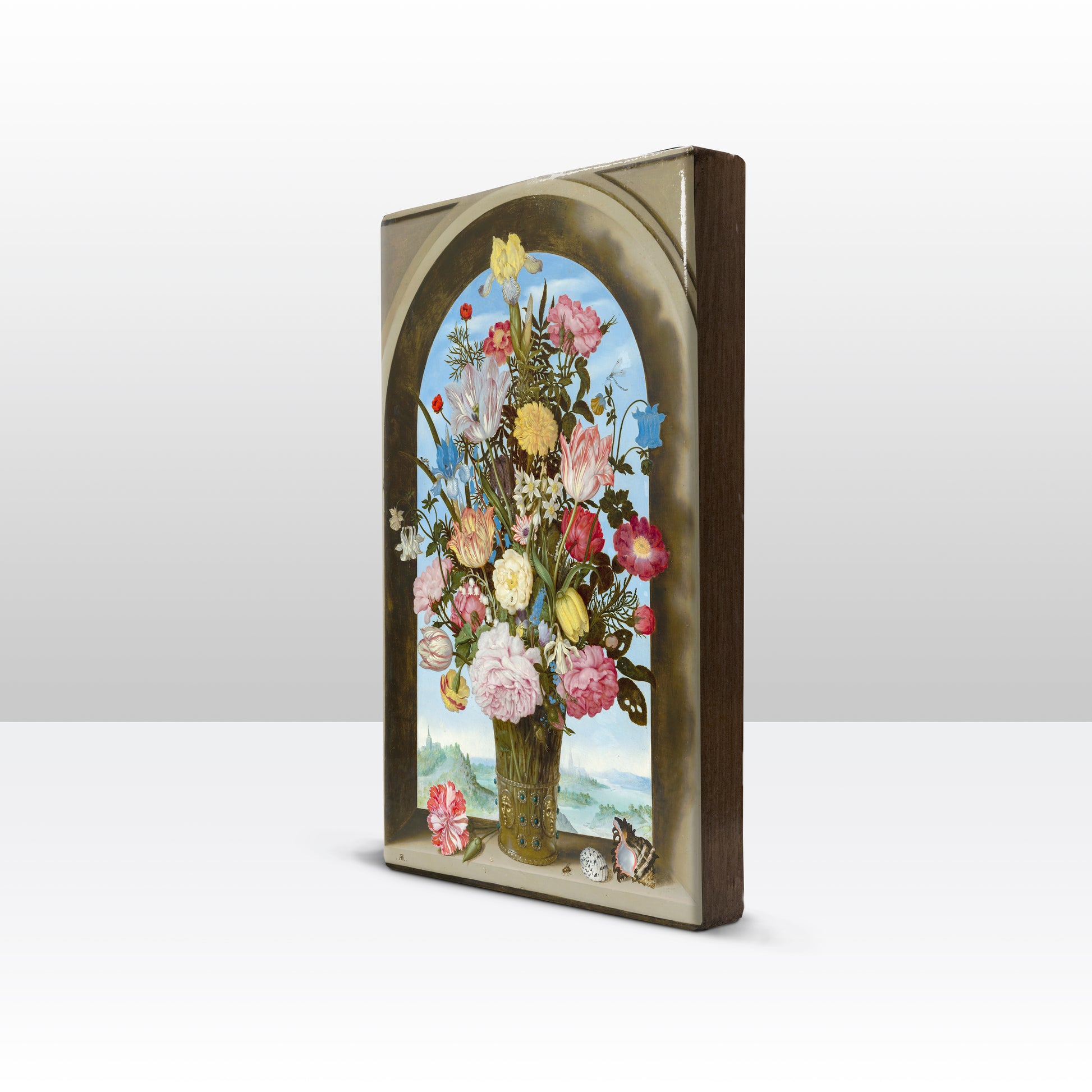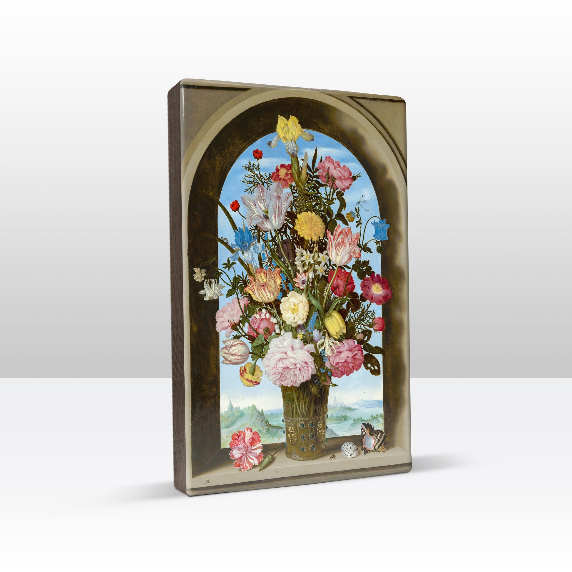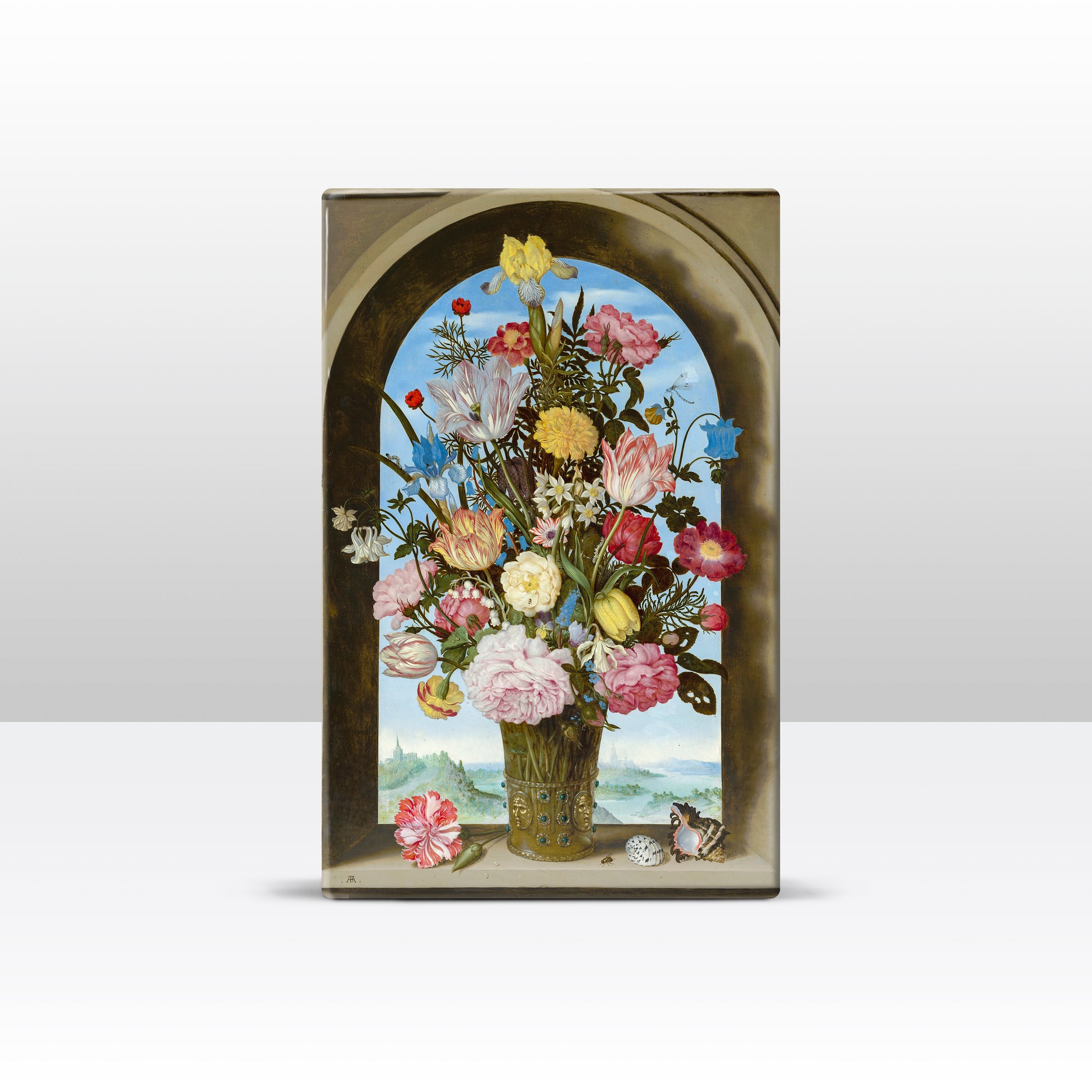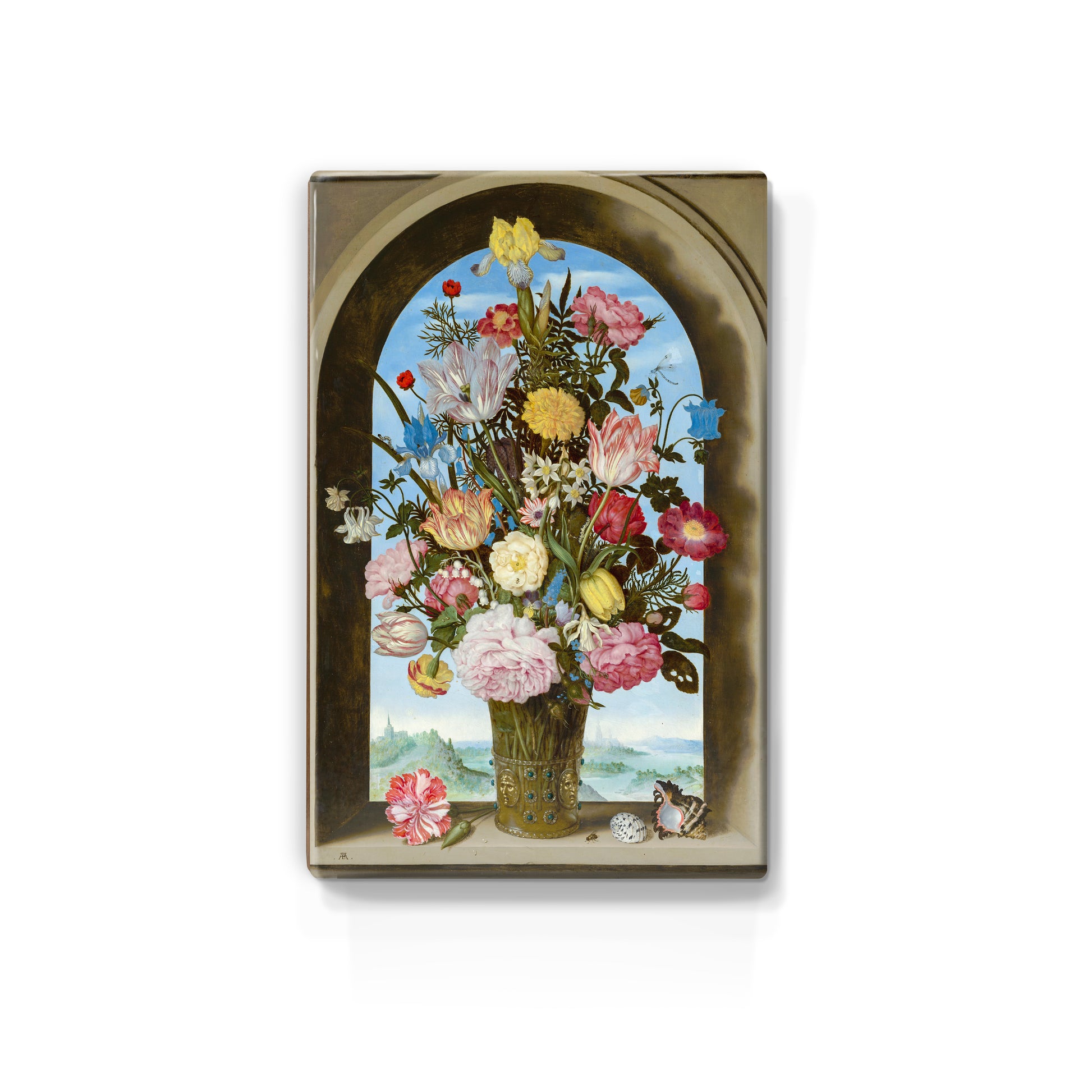 Laqueprint - Vaas met bloemen in raam - Ambrosius Bosschaert de Oude - 19,5 x 30 cm - LP011
