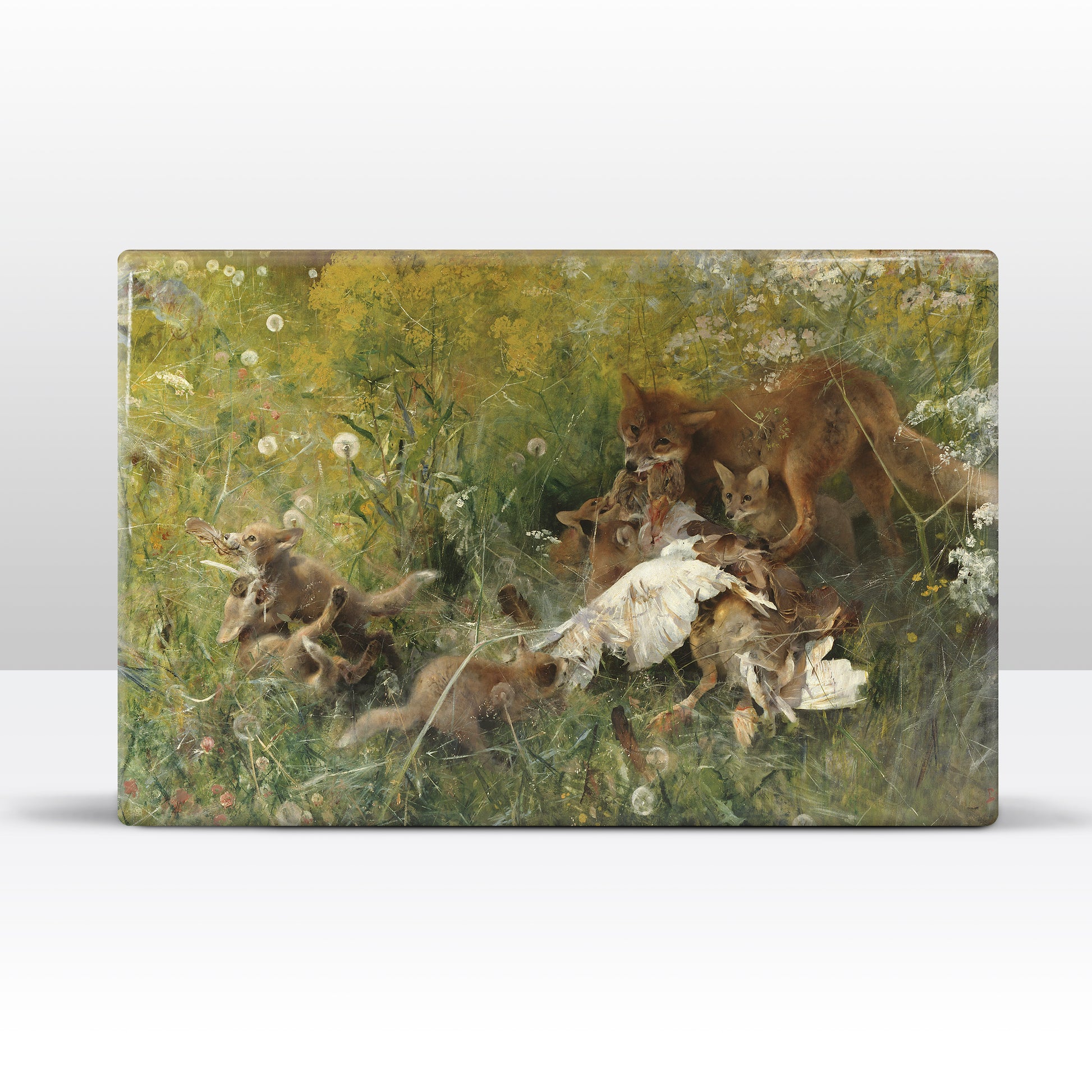Laqueprint - Vossenfamilie - Bruno Liljefors - 30 x 19,5 cm - LP248