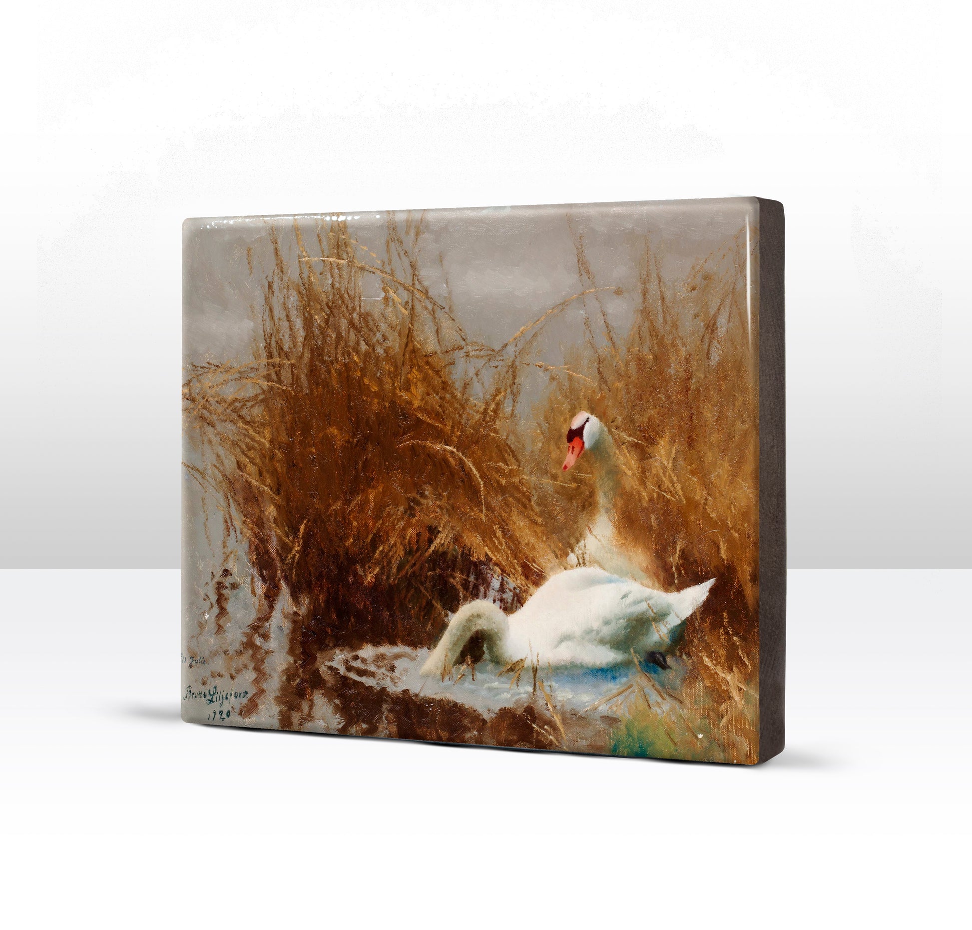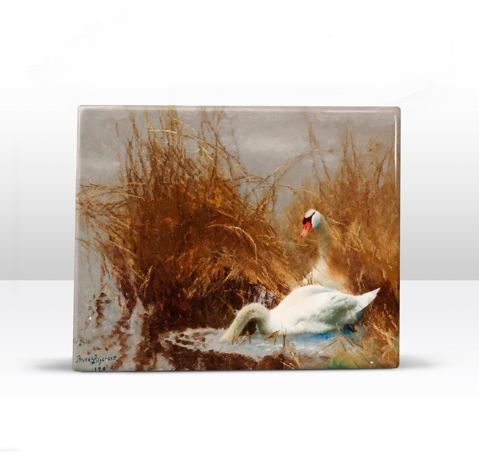 Laqueprint - Zwanen aan de waterkant - Bruno Liljefors - 24 x 19,5 cm - LP257