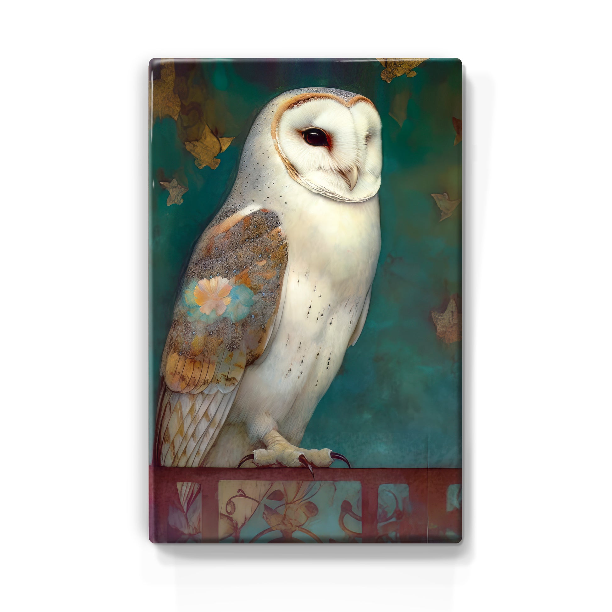 Laqueprint schilderij "Witte Uil En Dansende Bladeren"